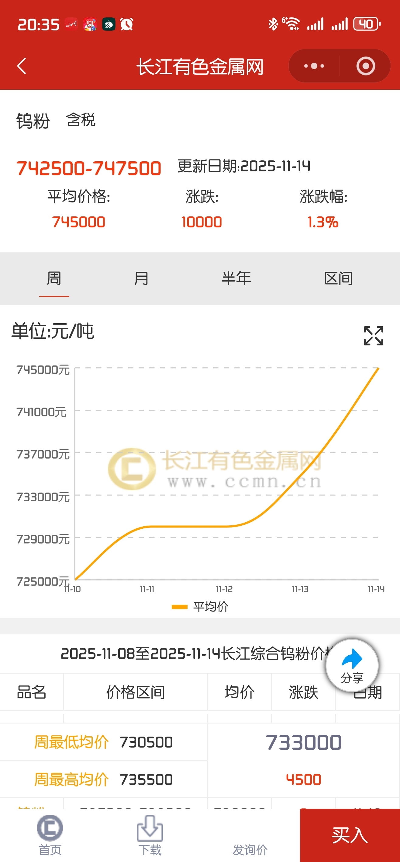 $中钨高新(SZ000657)$ 钨粉今天又涨了