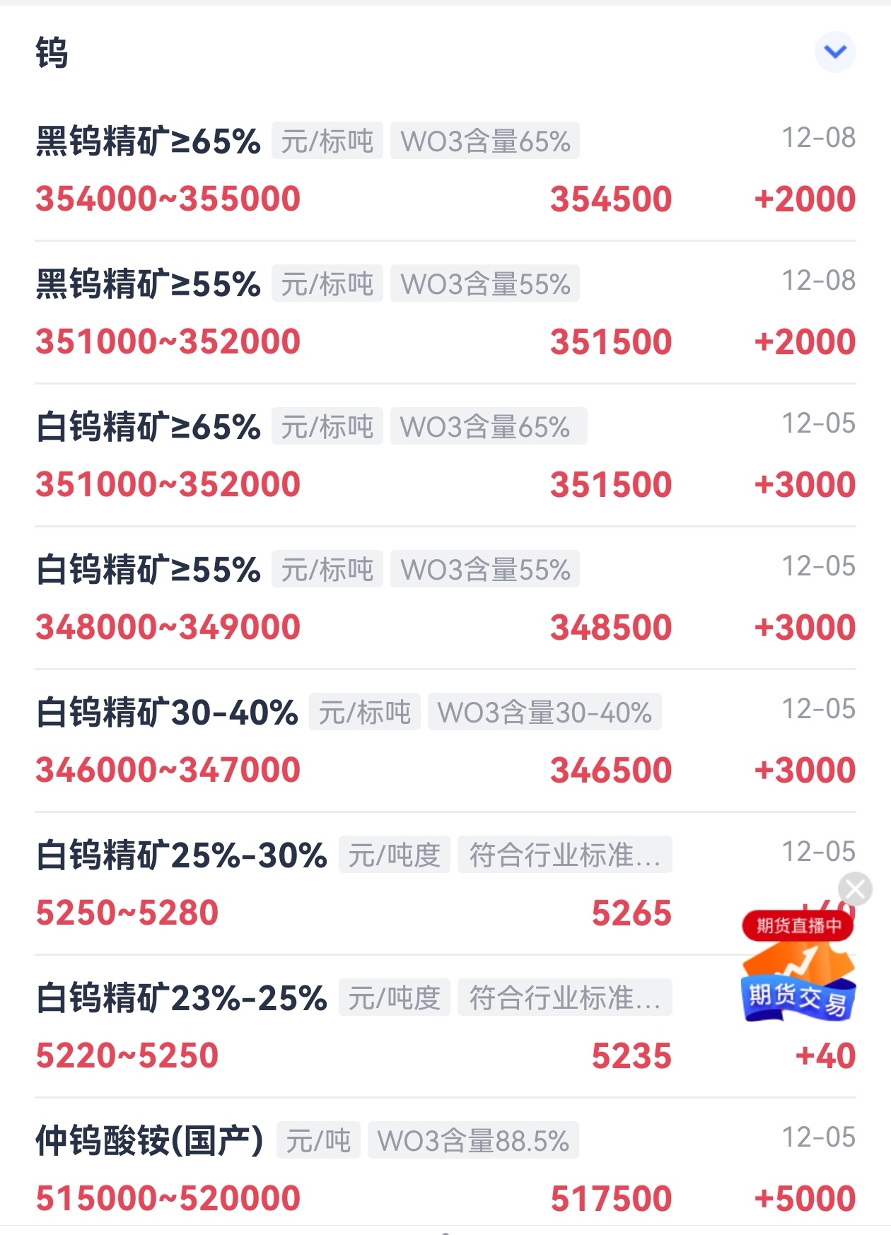 现货钨价格一天2000每吨的涨幅,一直涨,稀缺资源