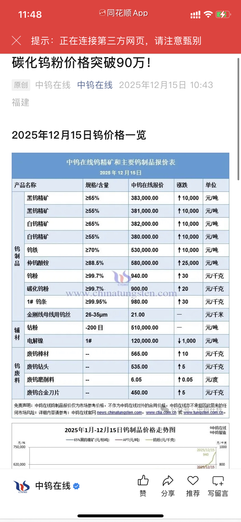 钨价格天天上涨,中钨高新表现真的很一般,这时候都涨不动,随时面临回调大跌的风险,
