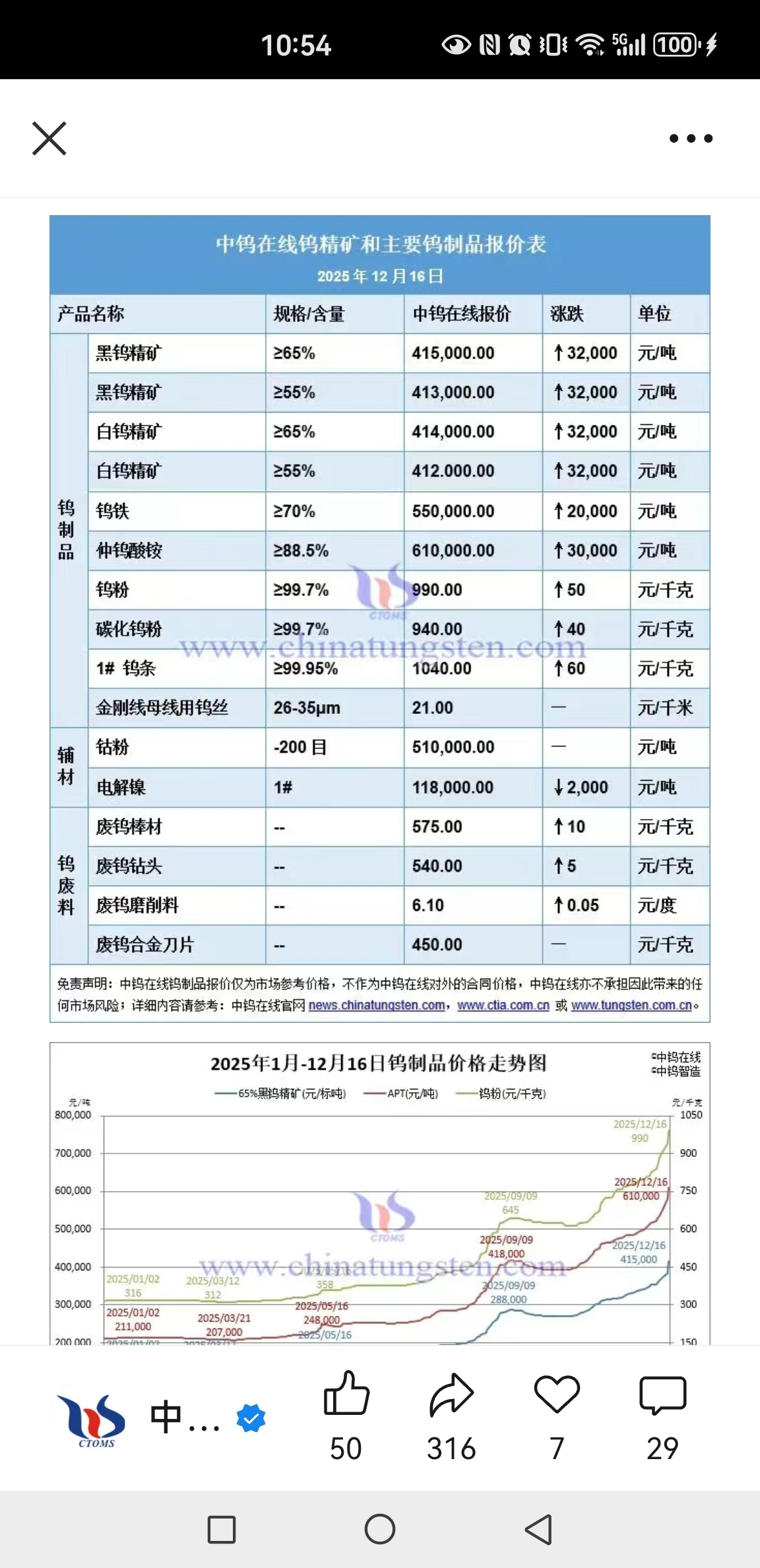 $中钨高新(SZ000657)$ 前面消耗的多,年底缺货了。价格加速上涨。