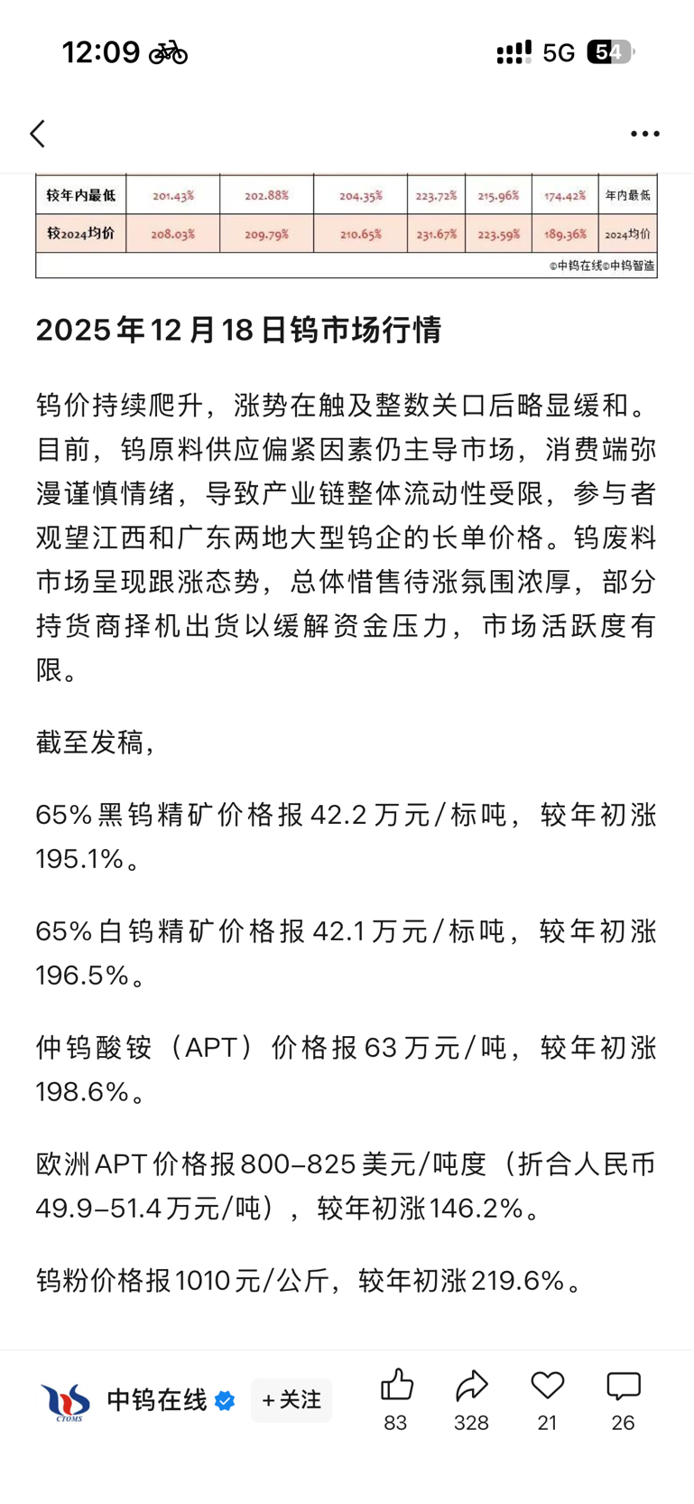 $中钨高新(SZ000657)$ 钨价涨势不止