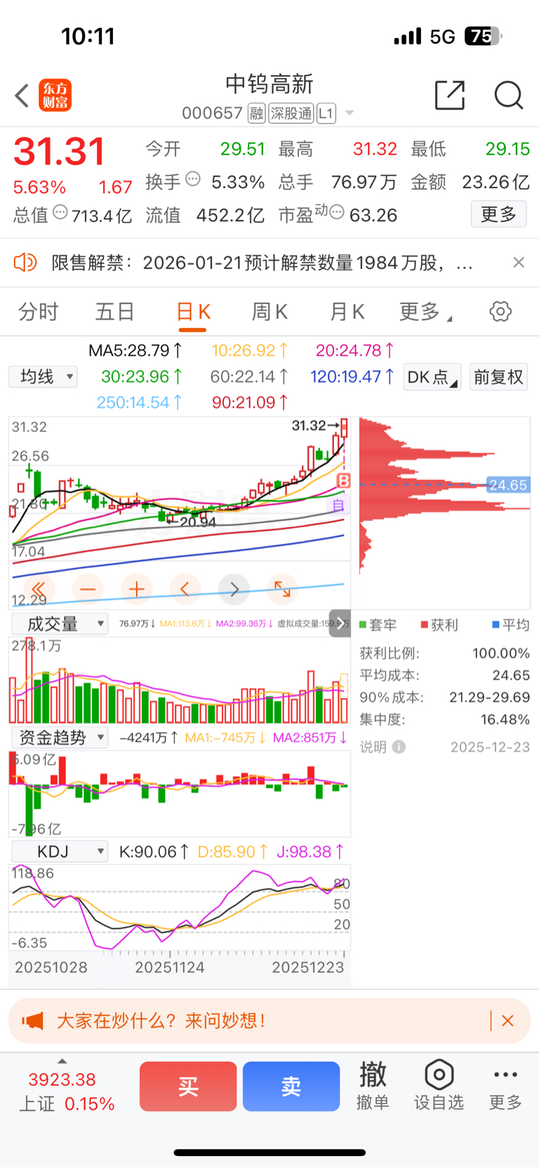 $中钨高新(SZ000657)$ 老乌,我回来助你大涨或者拉板