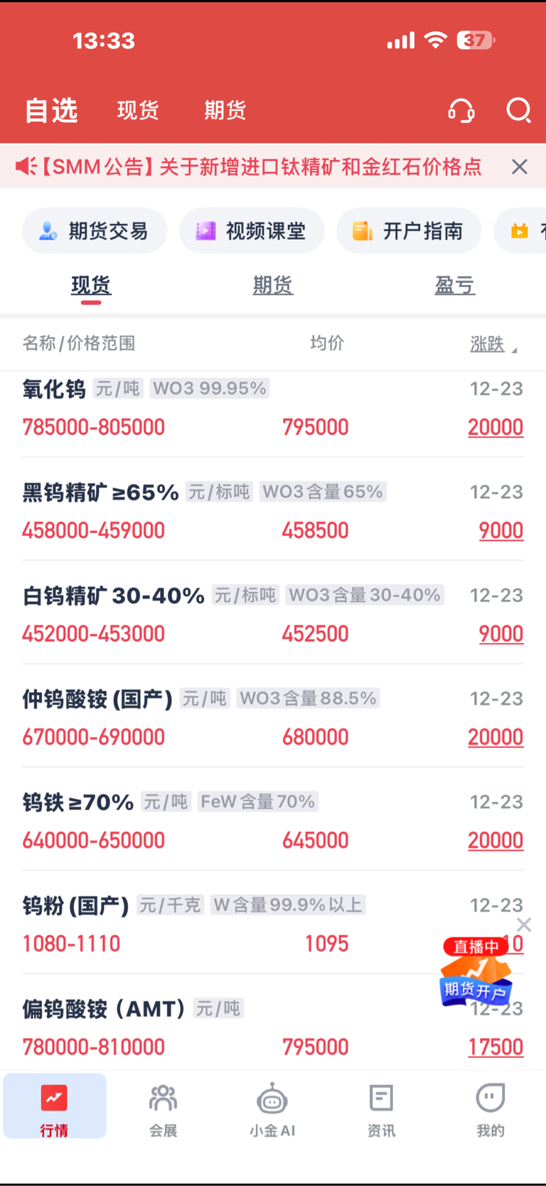$中钨高新(SZ000657)$ 钨矿金属今天继续每吨涨2万,天天涨涨不停,新高继续,百万一吨不是梦?