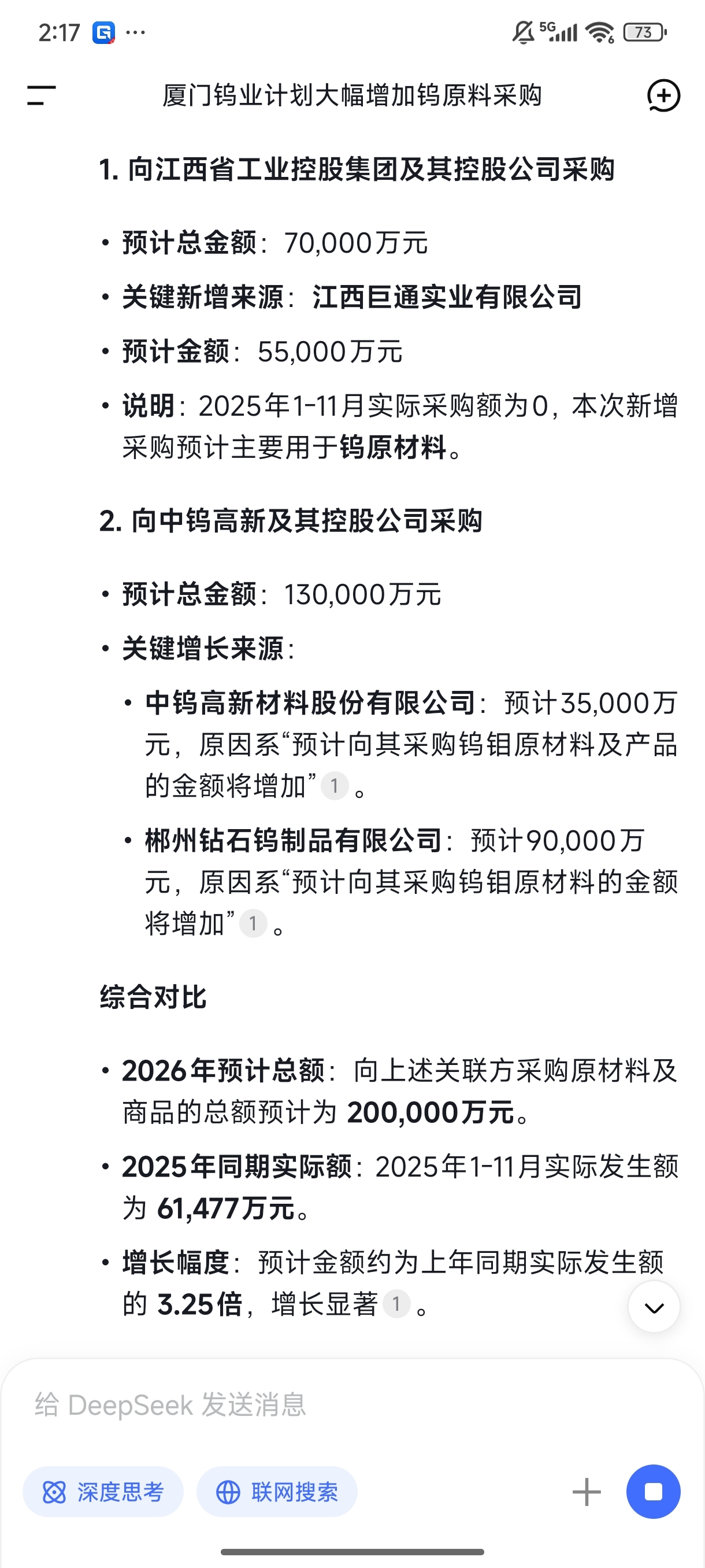 $中钨高新(SZ000657)$ 厦门钨业明年的采购了翻三倍,想一想其他的公司采购量会增加多少,钨价又要涨多少