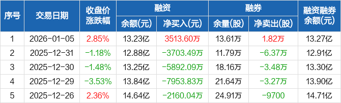 中钨高新:融资净买入3513.6万元,融资余额13.23亿元(01-05)