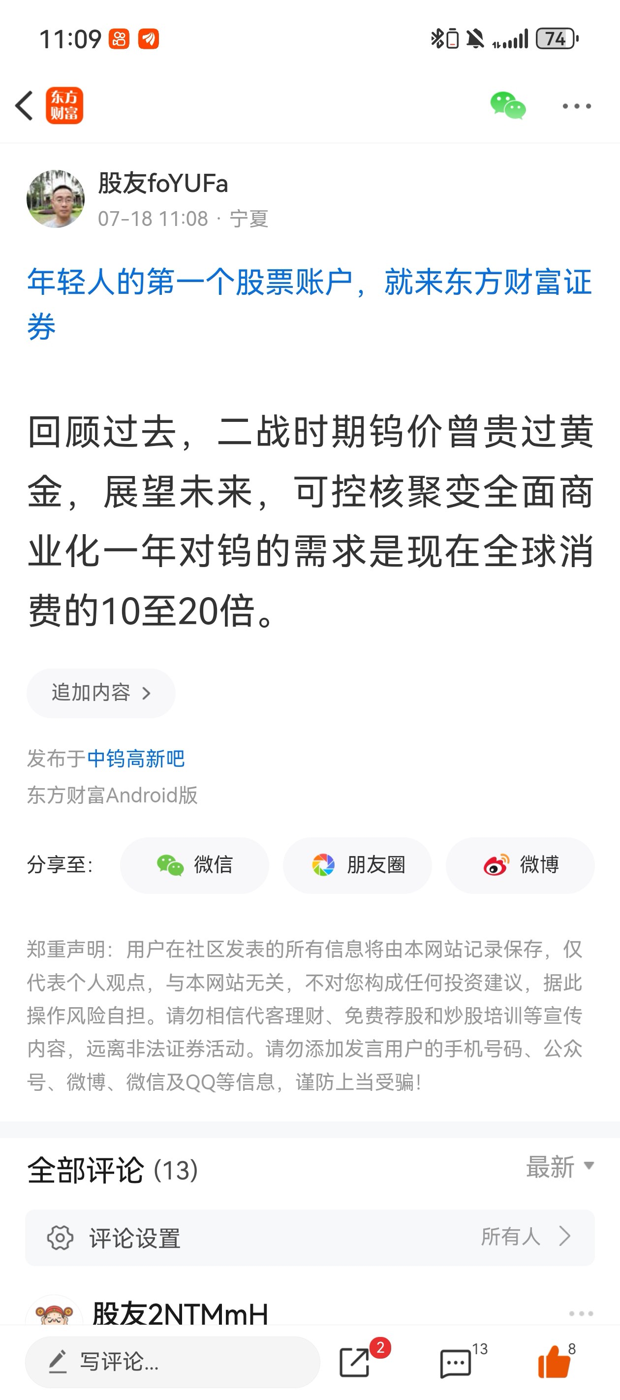 温馨提示: 1.根据《证券法》规定,禁止编造、传播虚假信息或者误导性信息,扰乱证券市场;2.用户在本社区发表的所有资料、言论等仅代表个人观点,与本网站立场无关,不对您构成任何投资建议。用户应基于自己的独立判断,自行决定证券投资并承担相应风险。《东方财富社区管理规定》