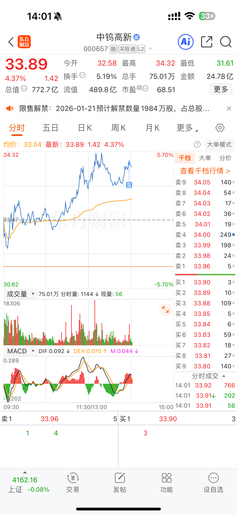$中钨高新(SZ000657)$ 减半,底部不动,涨跌随意
