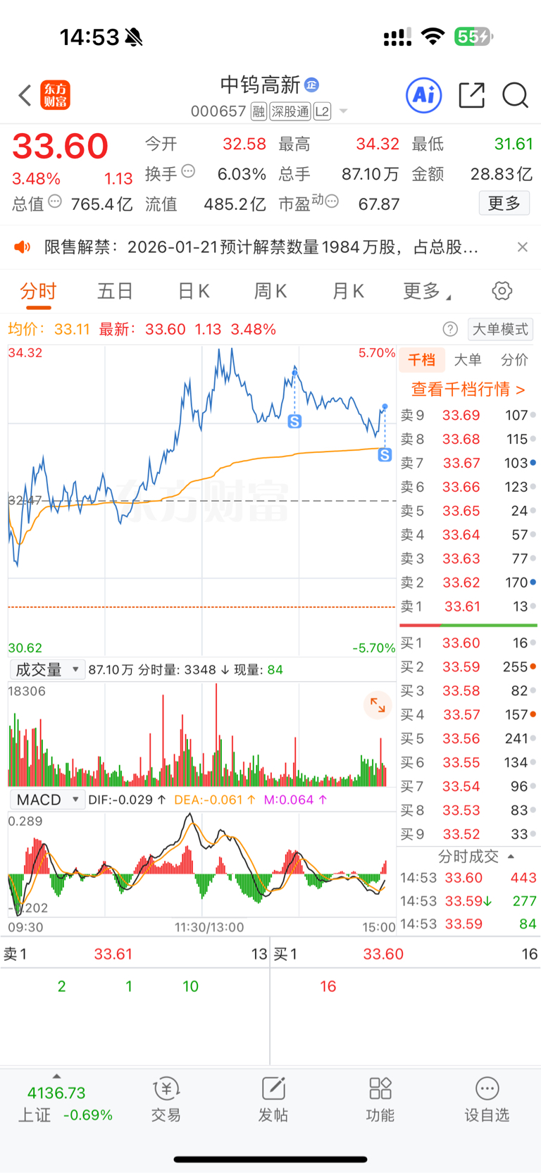 $中钨高新(SZ000657)$ 拉尾盘清仓了,明天低开再入,高开错过就再见了,祝你们发财!