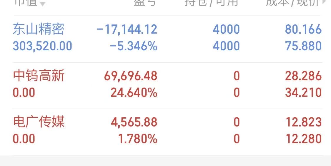 $中钨高新(SZ000657)$ 收获24点下车。$电广传媒(SZ000917)$ 下车。$东山精密(SZ002384)$ 舍不得,放着吧。