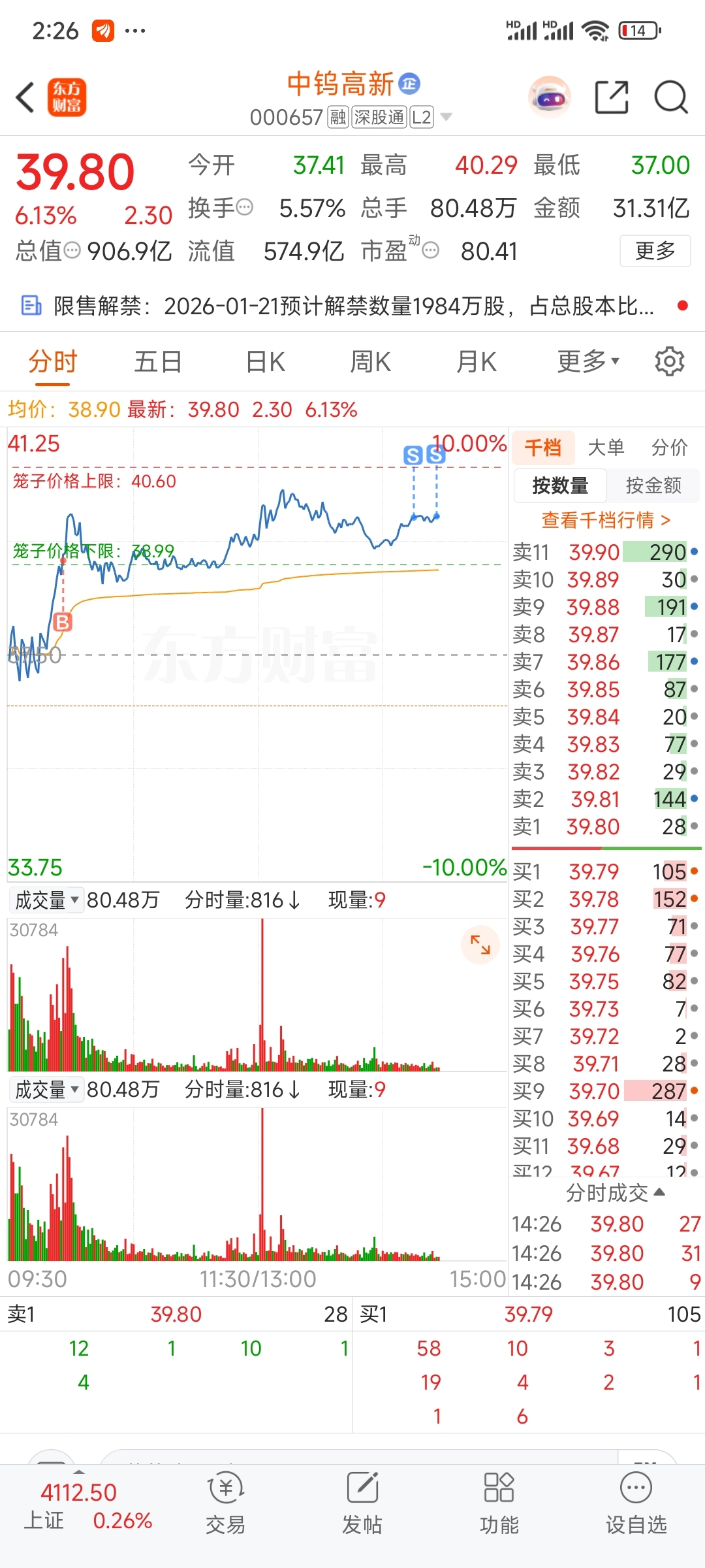 $中钨高新(SZ000657)$ 早盘竞价没买,亏大了