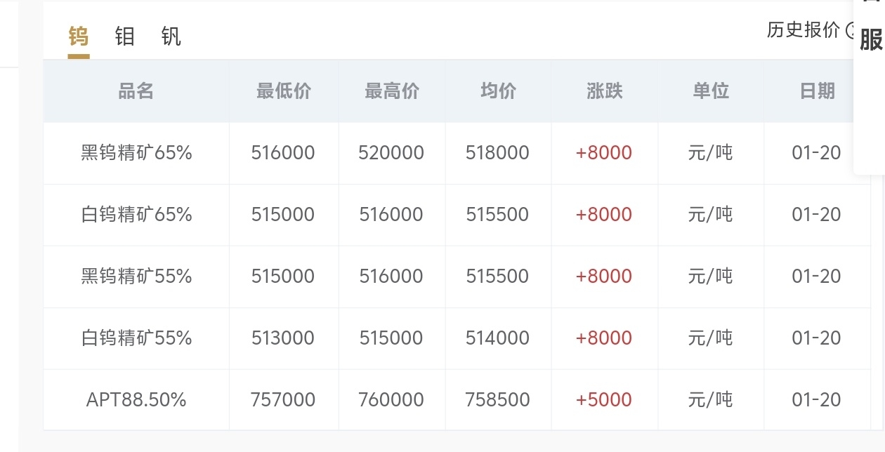 $中钨高新(SZ000657)$ 现货大涨!