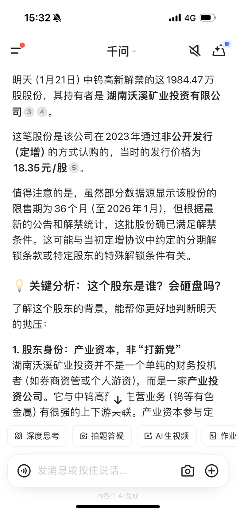 明天解禁股的股本是18块钱,中钨的合作公司不会都卖了。今天释放的恐慌差不多了,明