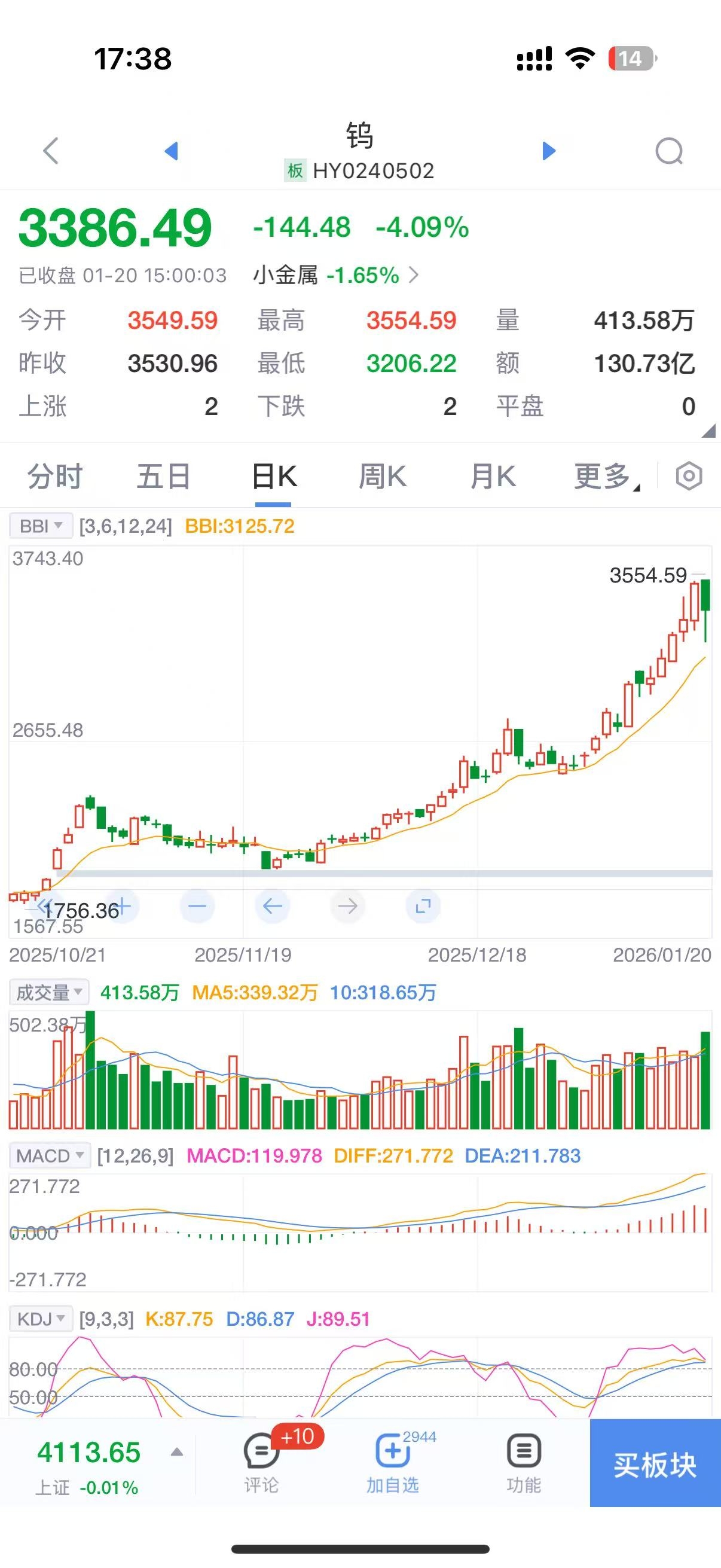 不知道有什么好猜的,不就是看钨的价格,钨涨它就涨,看好钨后市行情就买,就这么简单