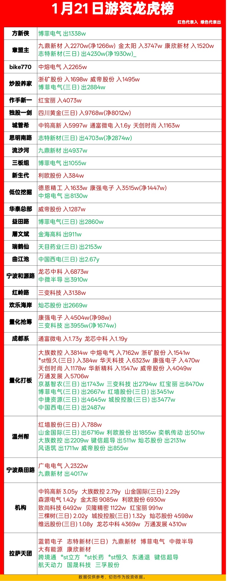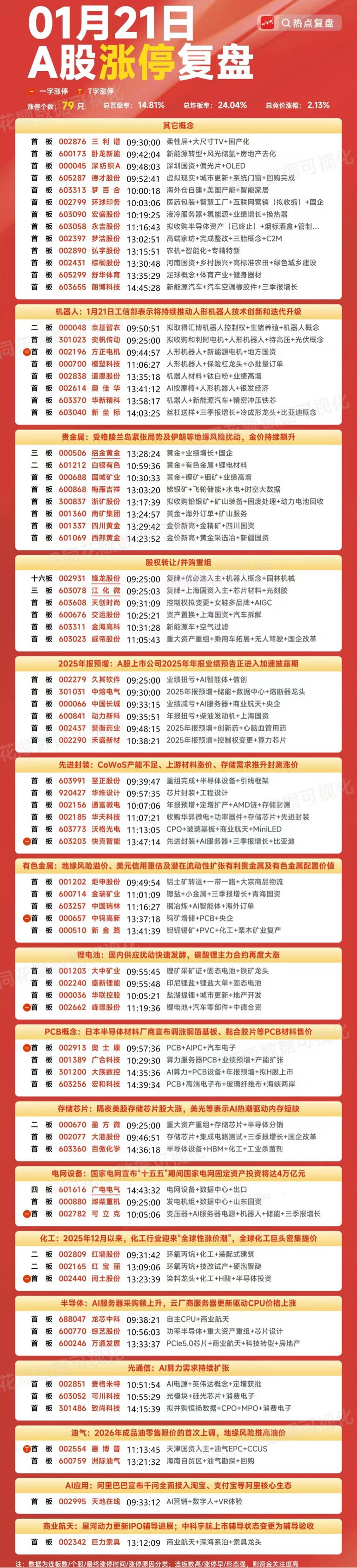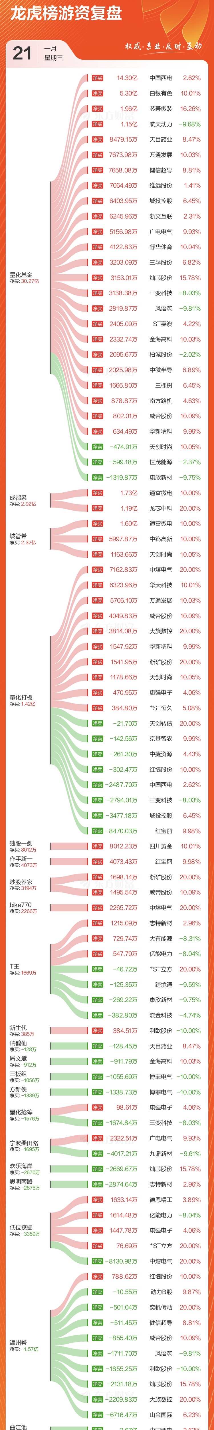 1月21日 游资龙虎榜&各大板块涨停个股复盘
