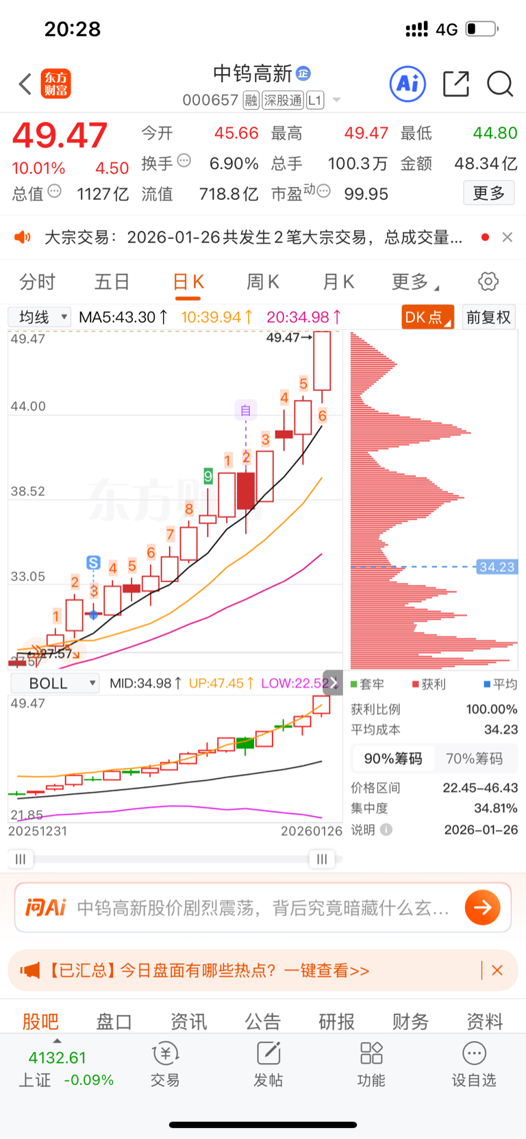 $中钨高新(SZ000657)$ 天天哭 今天猛起胆子进来了,不到60不走