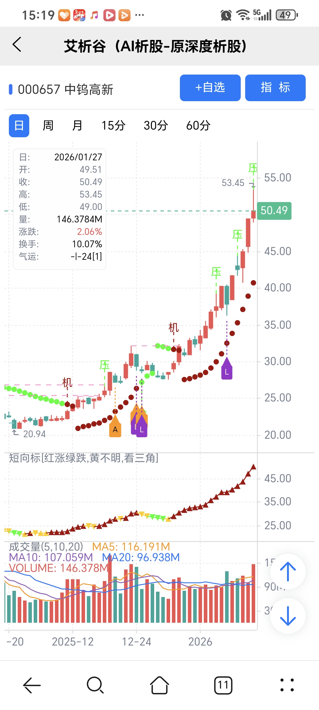 AI模型选股,量化指标识别关键点,简单技术分析确定买卖点,结合量化和人工综合运用,才能有优势。中钨高新