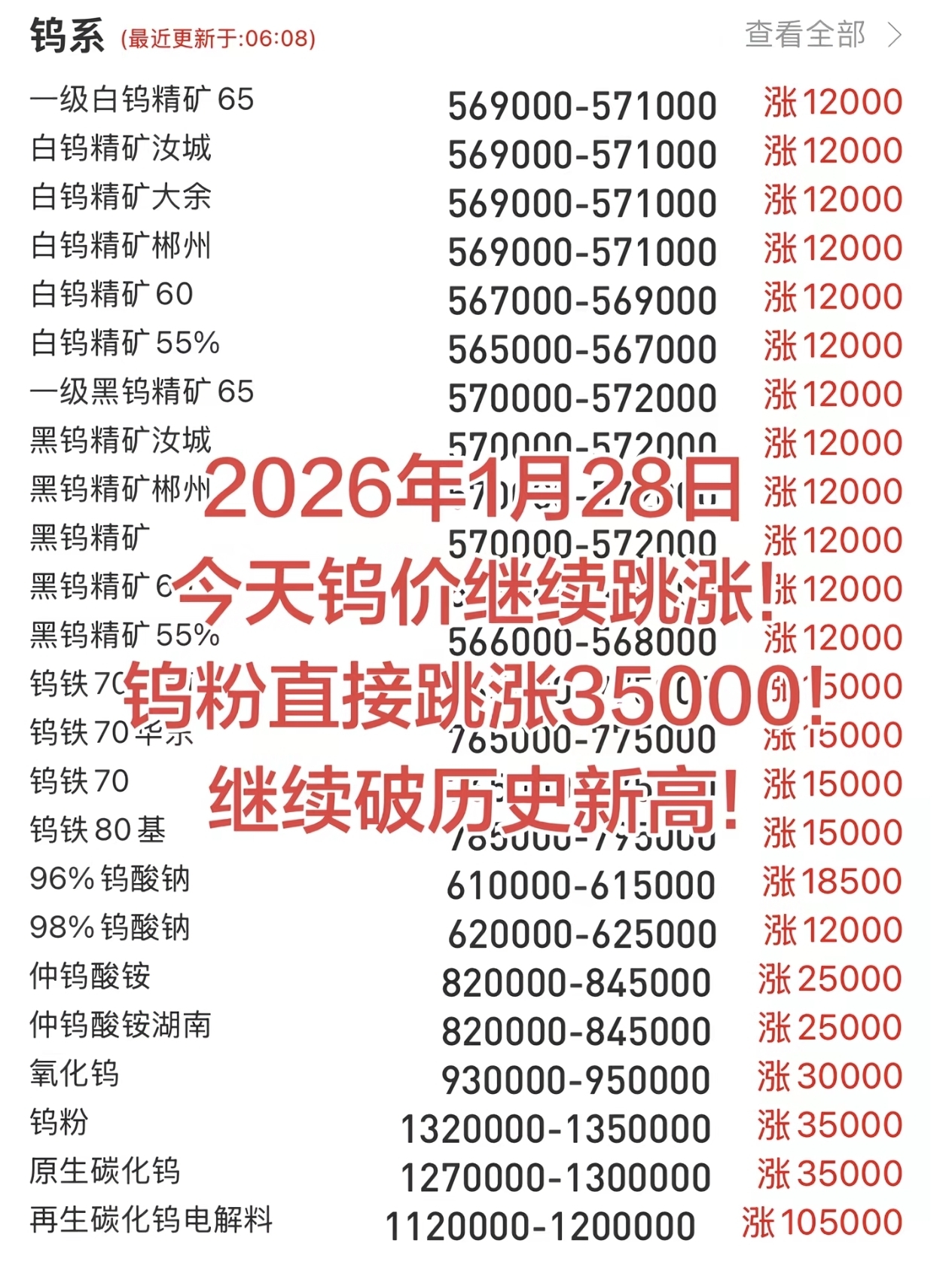 钨价格大涨,前几天获利盘走了,仅此而已,大胆抄底。你继续砸,我长期持有。你不砸我