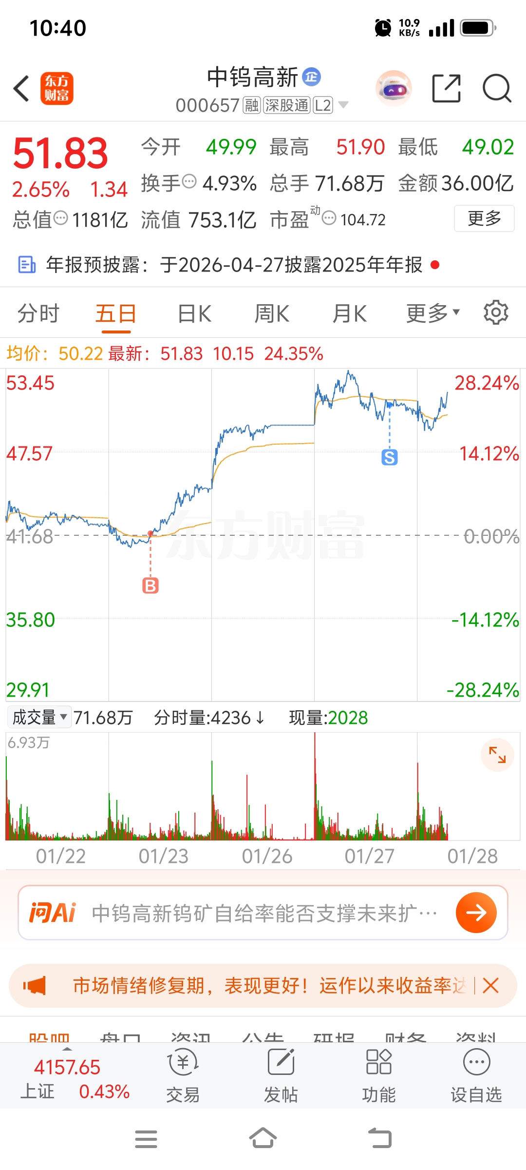 $中钨高新(SZ000657)$ 对不起啊哥今天没接。能不能等明天没有仓位了