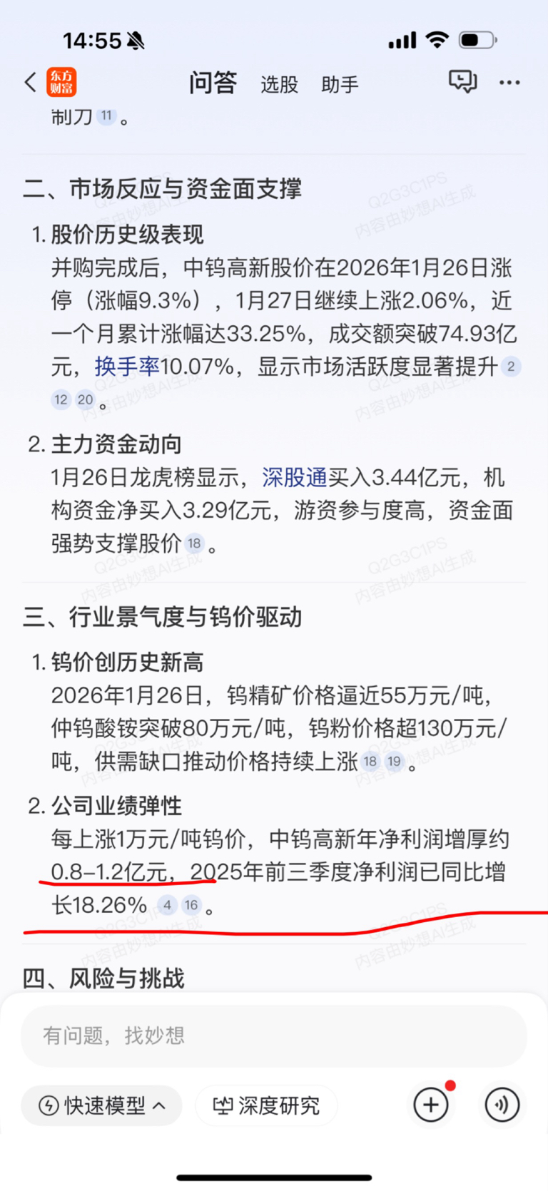 钨价格每上涨一万一吨,公司净利润增加1亿左右,最高可以1.2亿