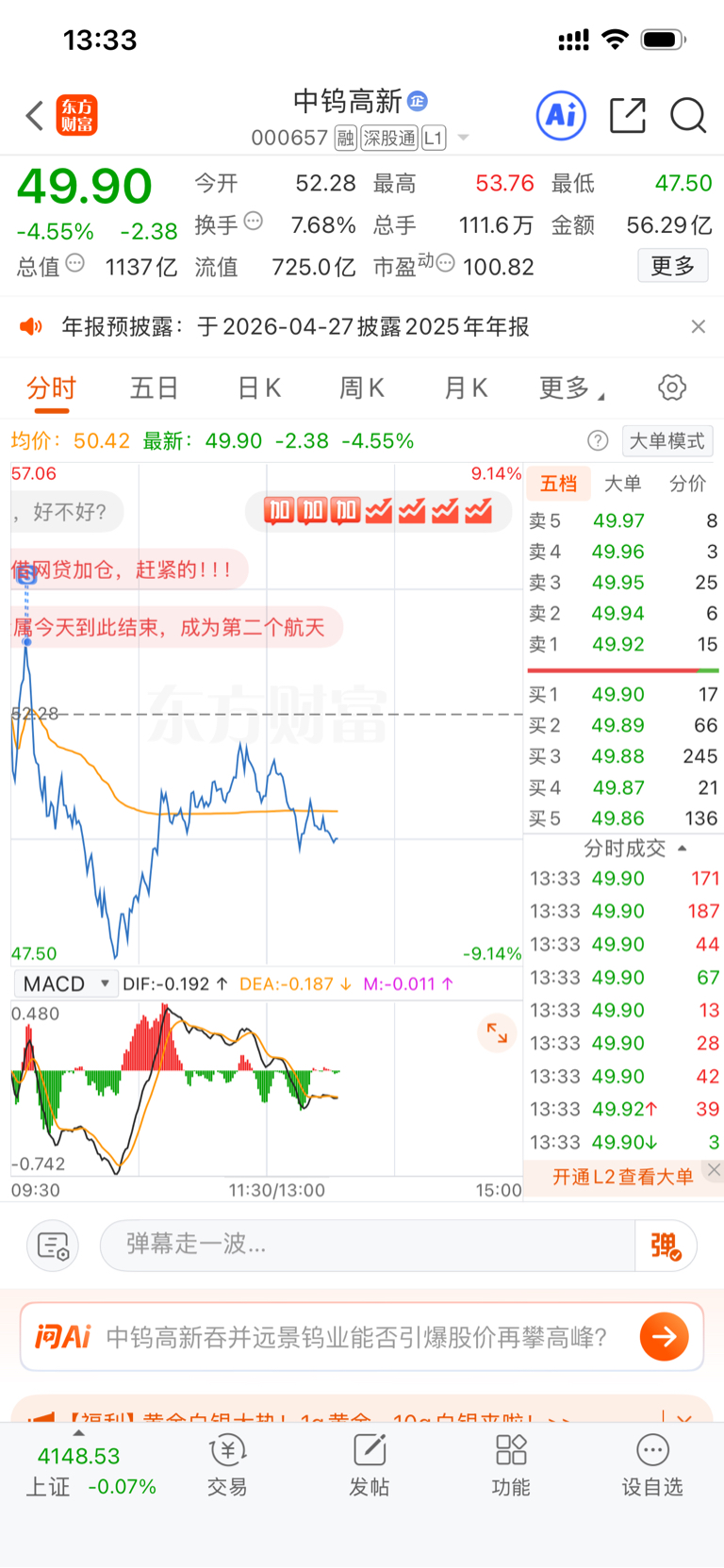 $中钨高新(SZ000657)$ 跑得快,先看戏