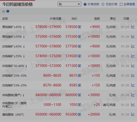 今天钨现货大涨!