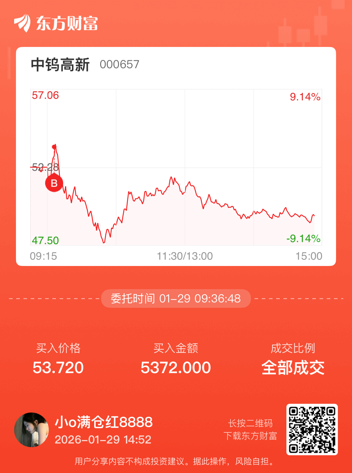 温馨提示: 1.根据《证券法》规定,禁止编造、传播虚假信息或者误导性信息,扰乱证券市场;2.用户在本社区发表的所有资料、言论等仅代表个人观点,与本网站立场无关,不对您构成任何投资建议。用户应基于自己的独立判断,自行决定证券投资并承担相应风险。《东方财富社区管理规定》