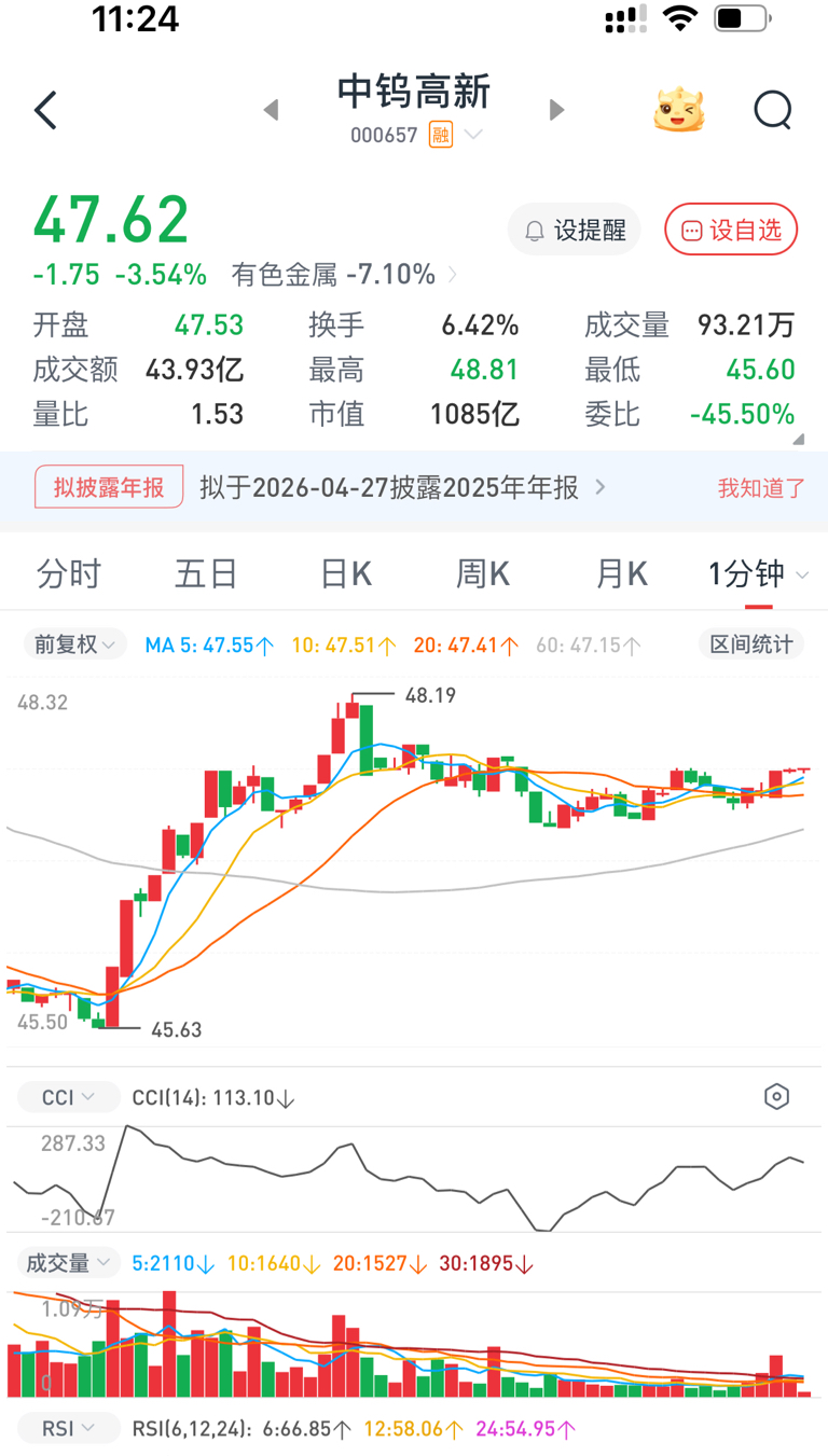 $中钨高新(SZ000657)$ 横盘抢筹骗谁呢?