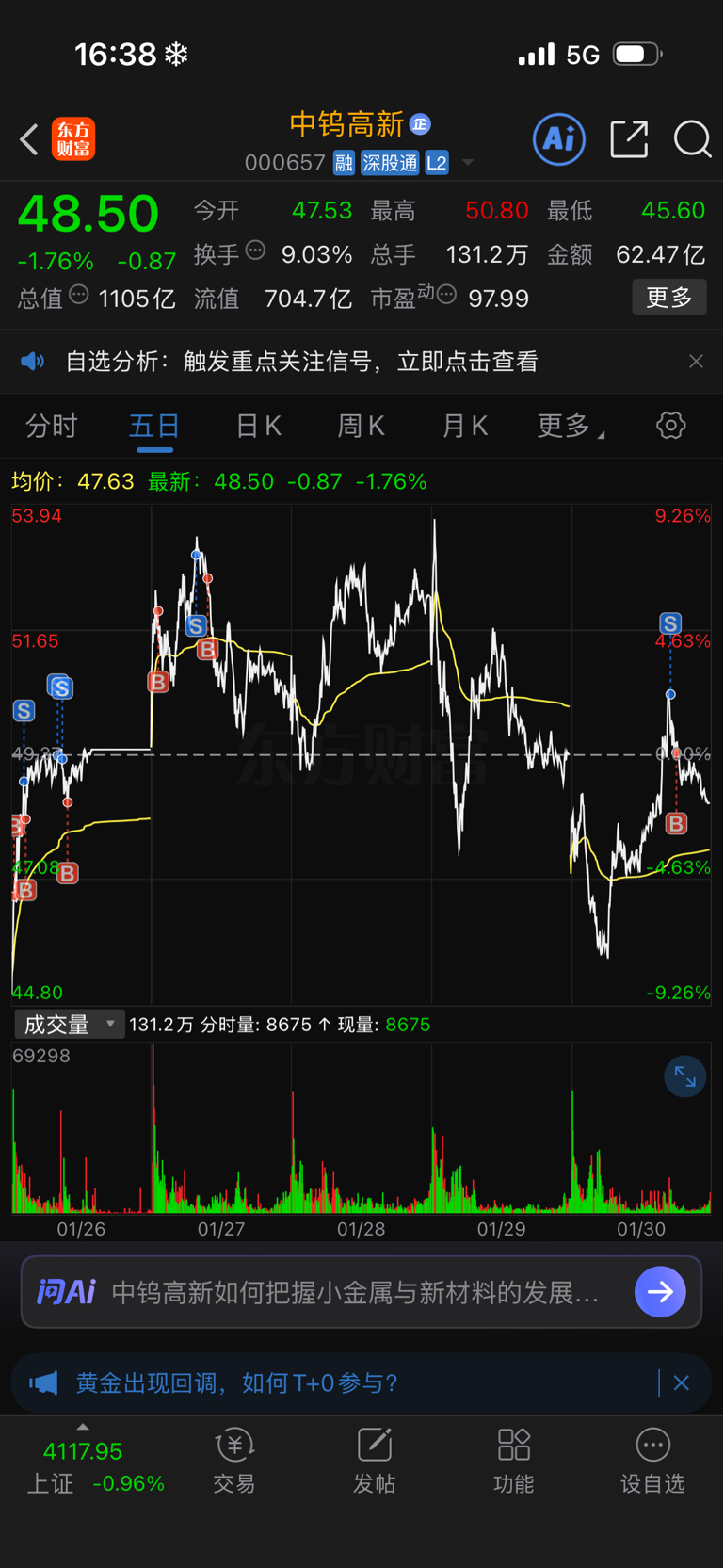 $中钨高新(SZ000657)$ 今天t裤衩子上了,早上差一点割 ,感谢主力拉上来