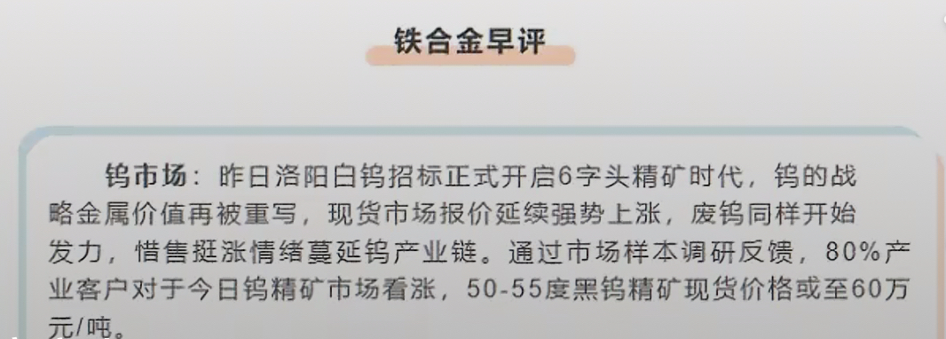 洛阳白钨招标正式开启6字头精矿时代,钨的战略金属价值再被重写。