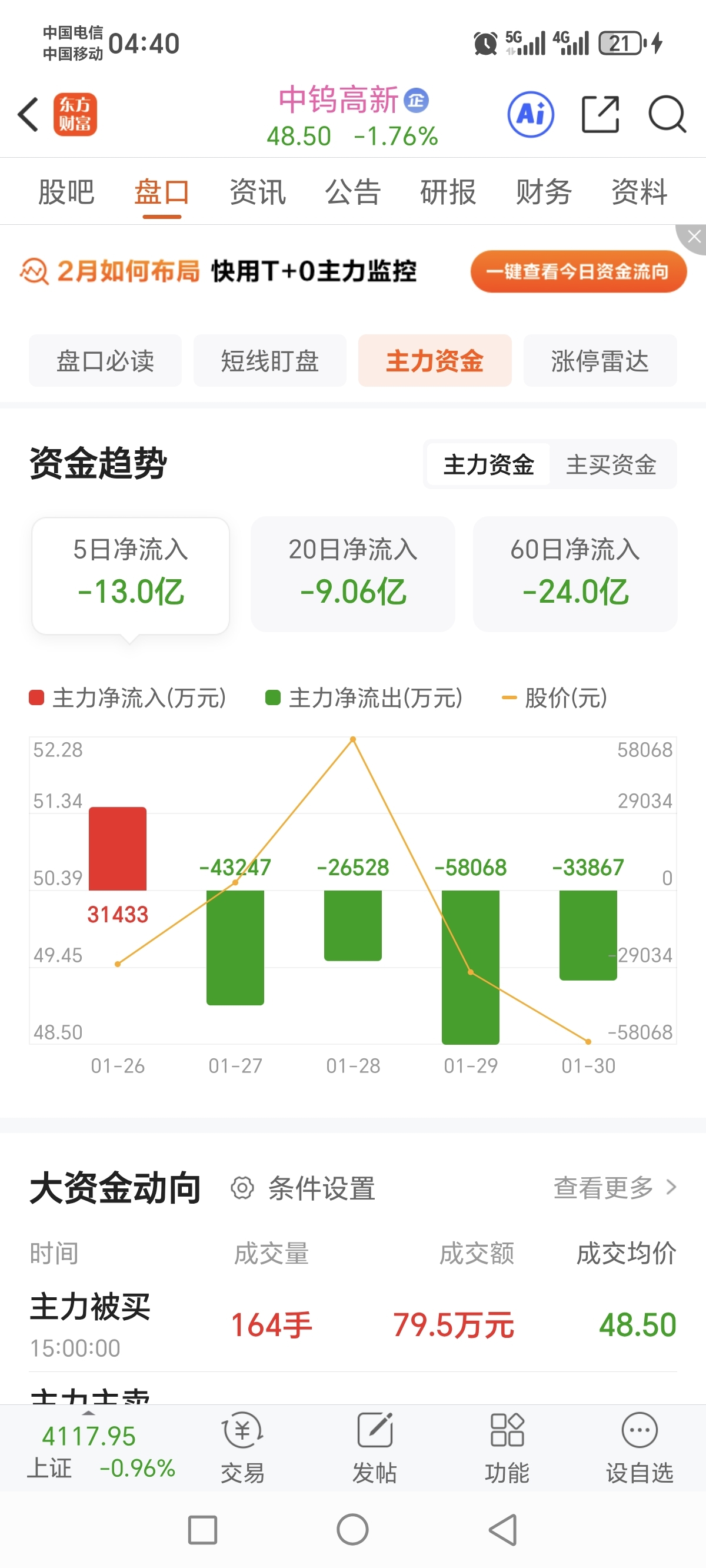 $中钨高新(SZ000657)$ 近期主力资金净流出