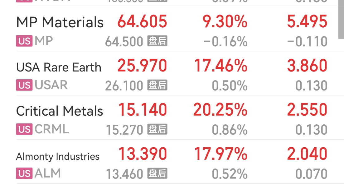 $中钨高新(SZ000657)$ 美股大涨