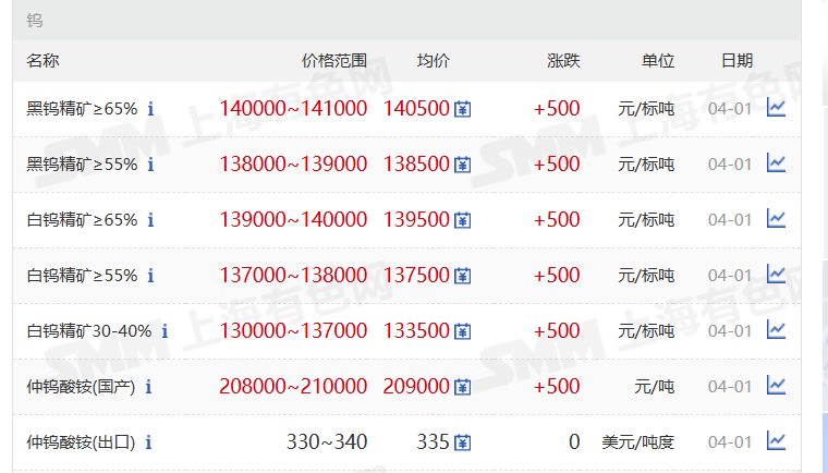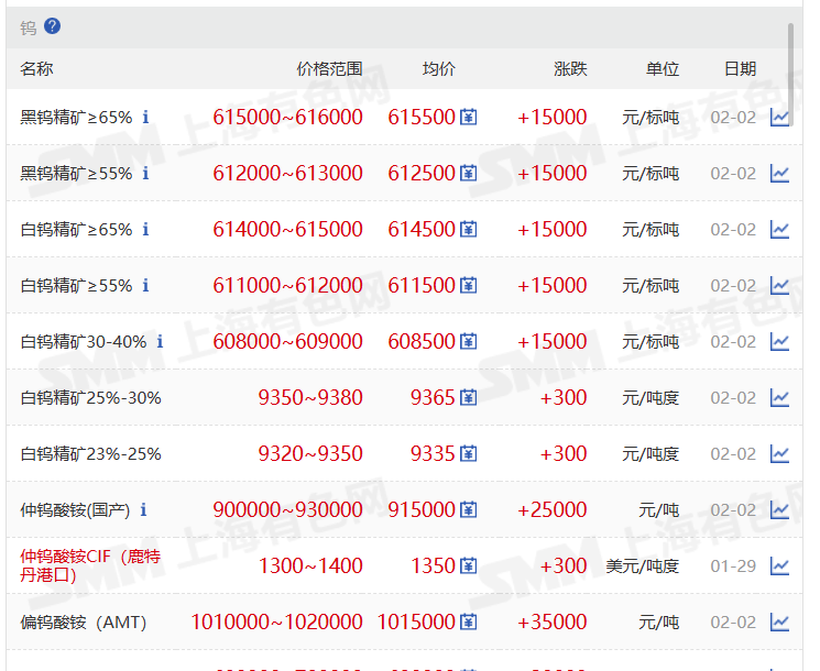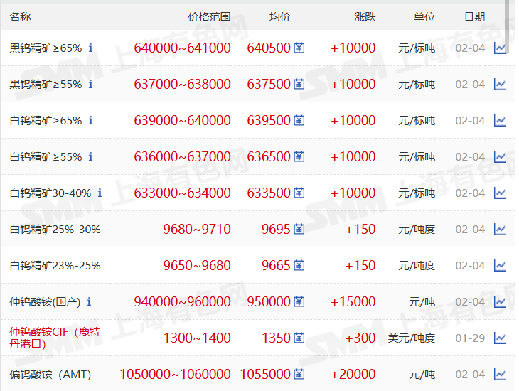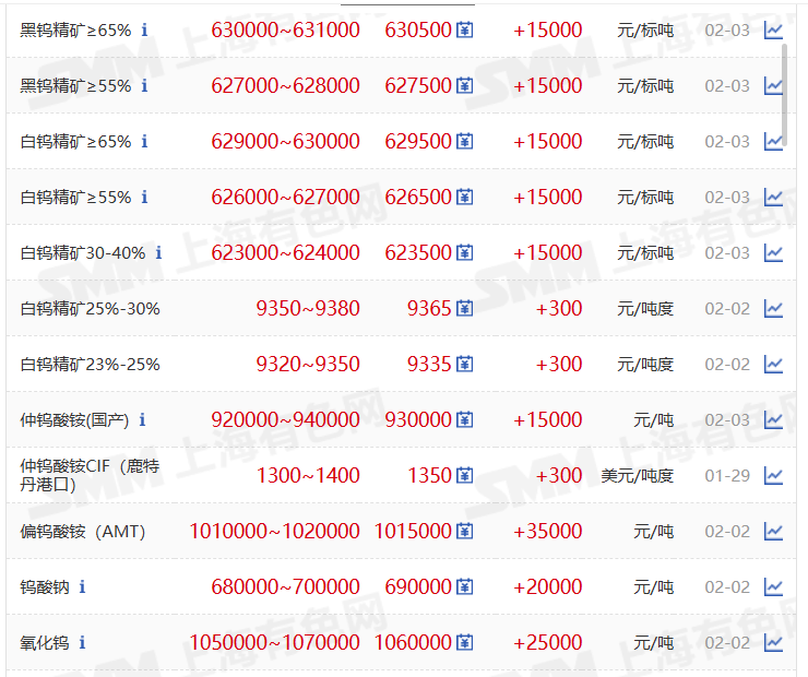 2月3日,4,5日钨价现货行情
