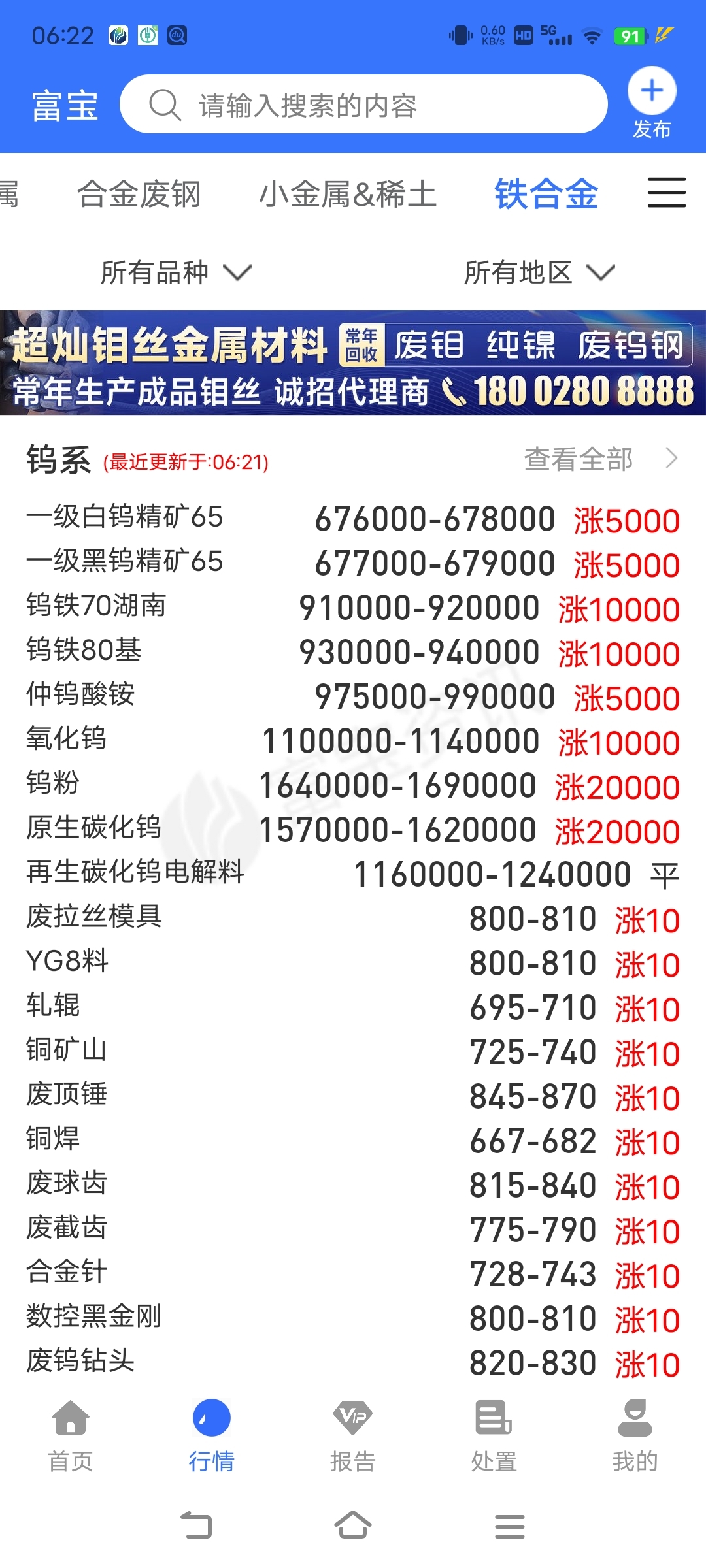 今日最新钨