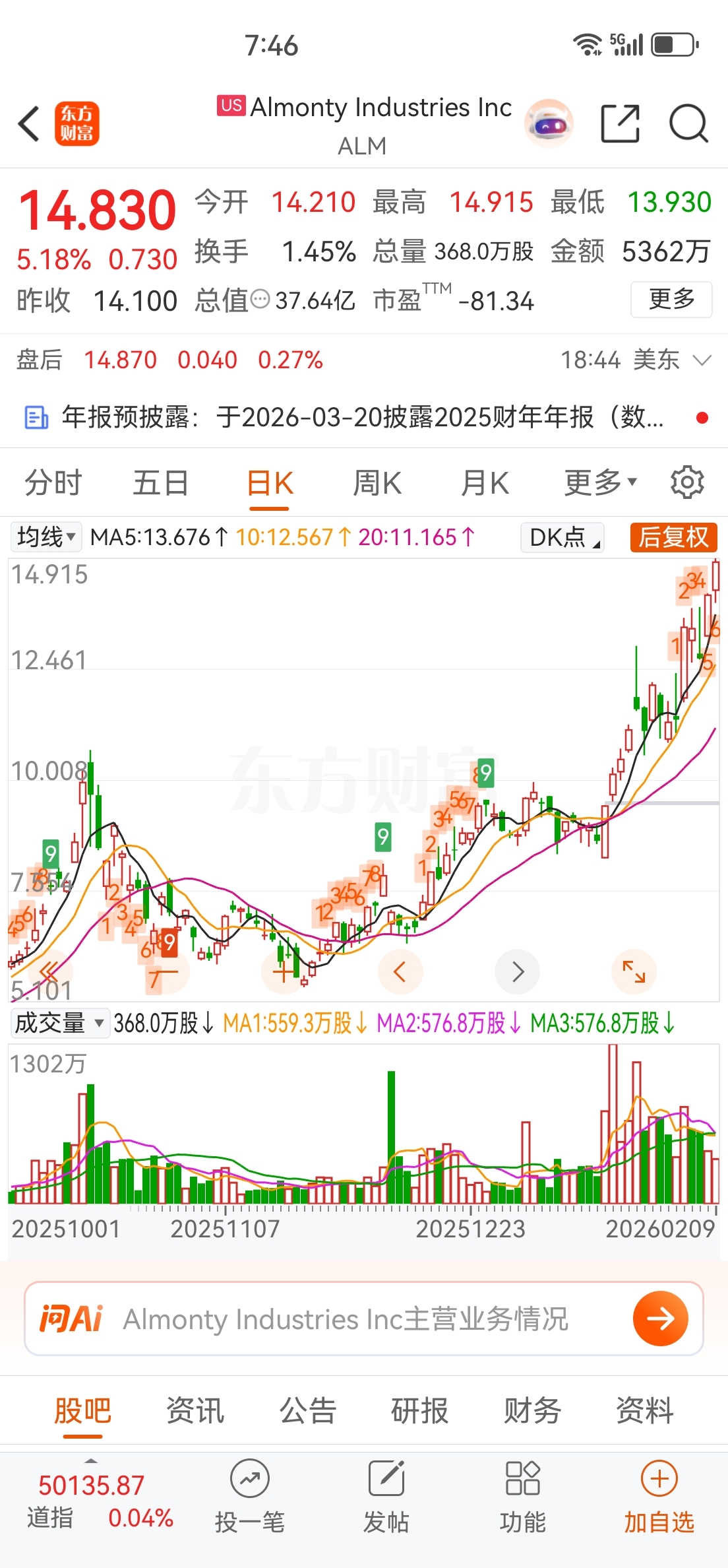 美国ALM钨矿企业股价迭创新高,26年涨70%,厦门钨业涨36%,中钨高新70%