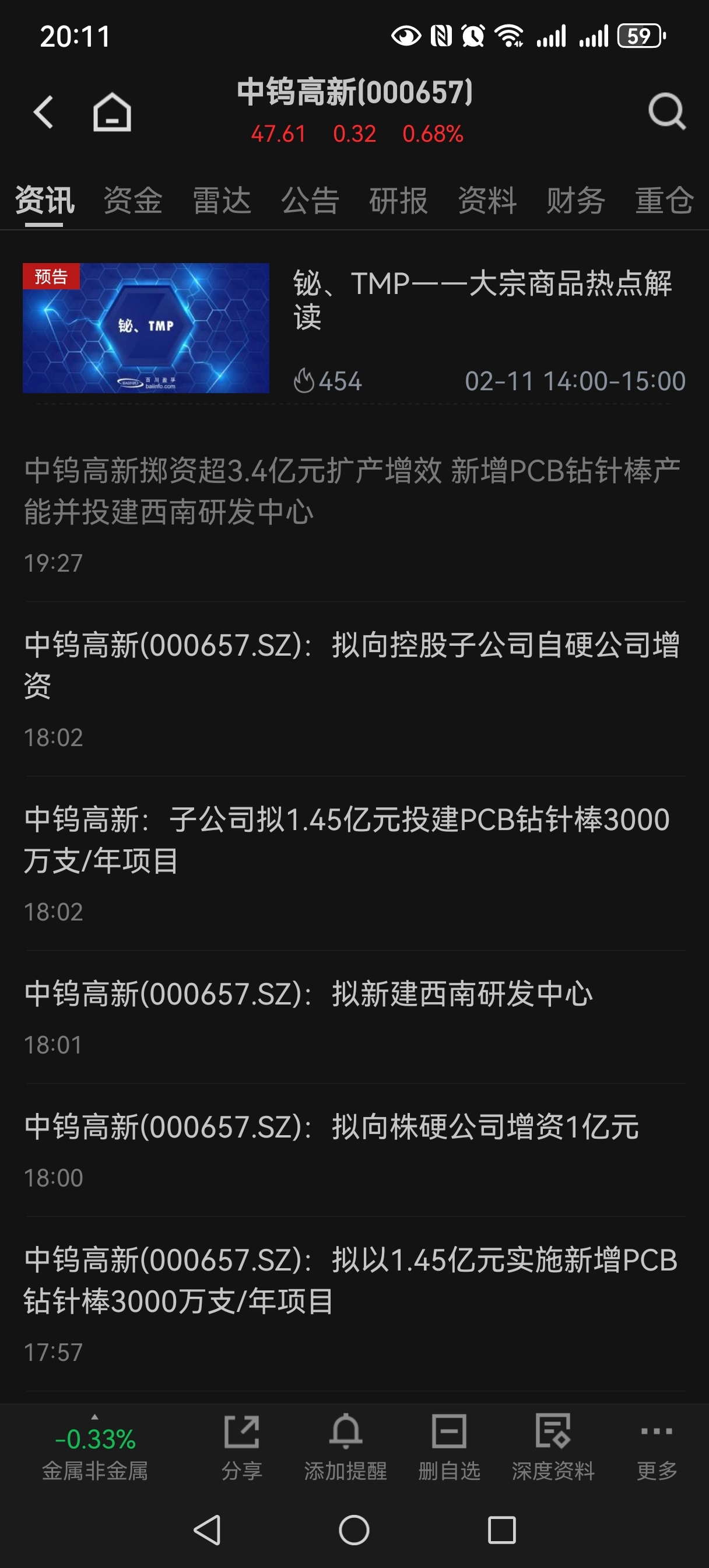 $中钨高新(SZ000657)$ 今晚wind金融密集发布的都是利好消息!有点怕踏空了!