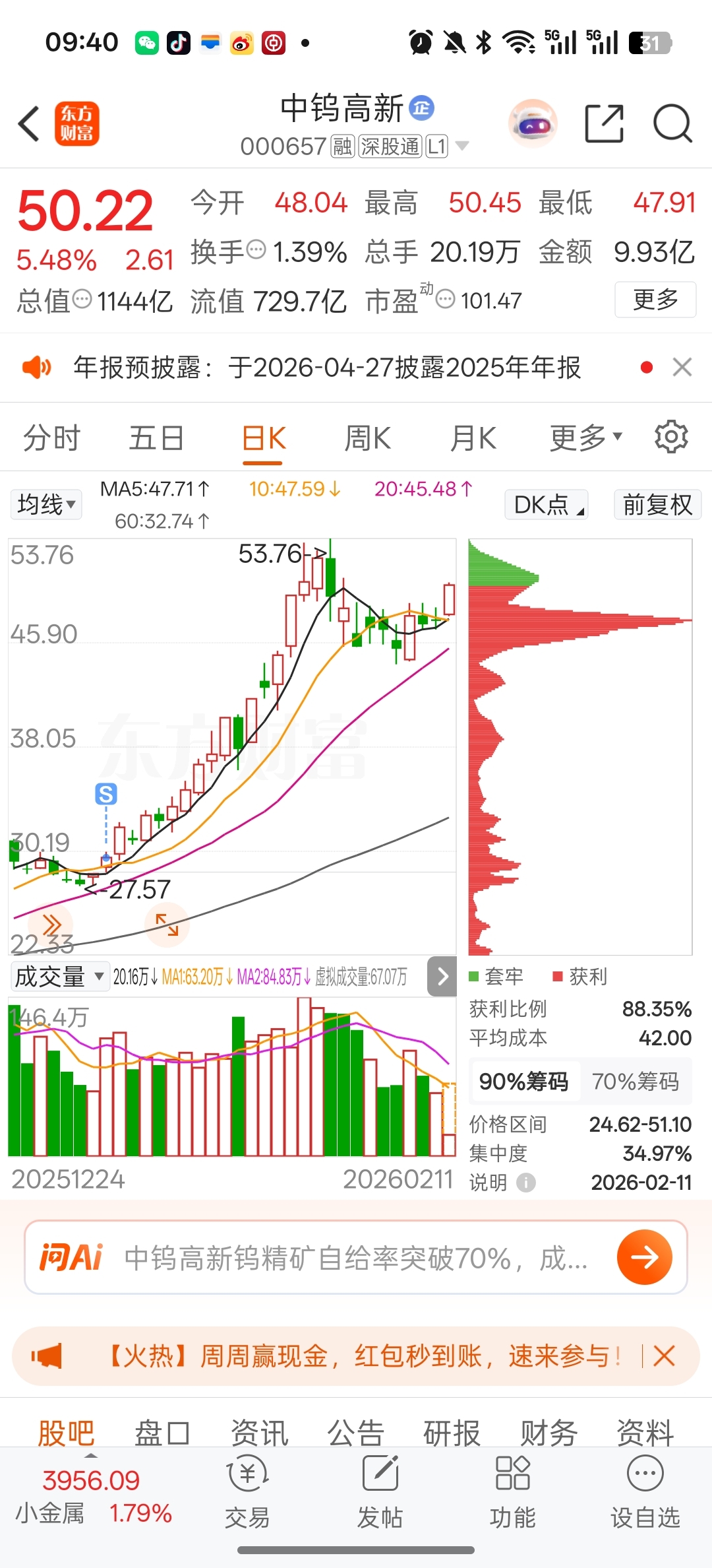 $中钨高新(SZ000657)$ 呜呜呜呜