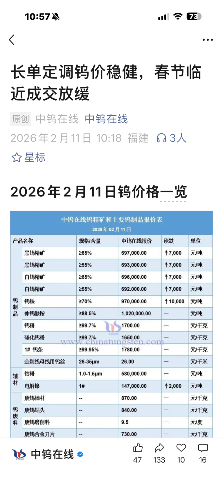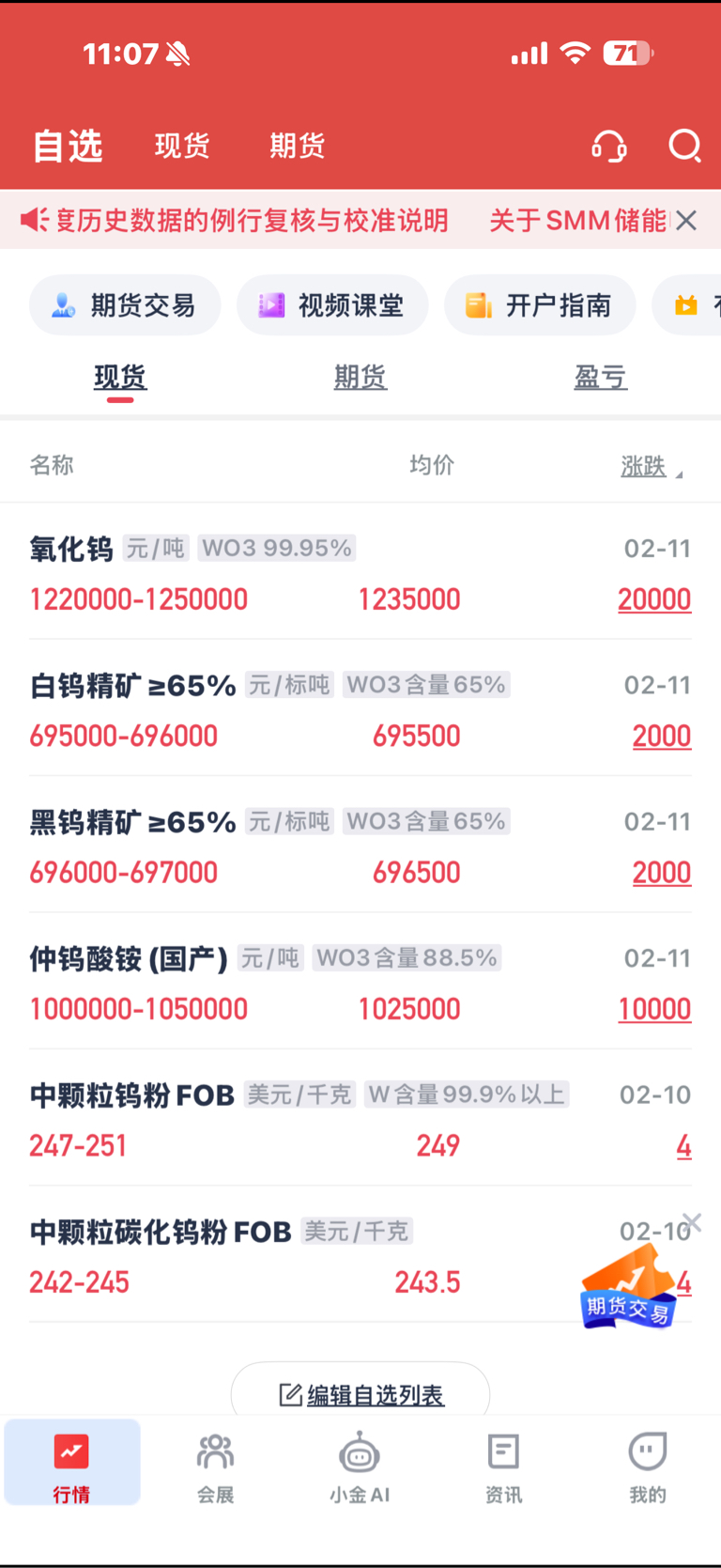 钨金今天继续强势上涨!其中氧化钨每吨涨2万元,中钨酸铵每吨涨1万元,黑钨矿每吨突