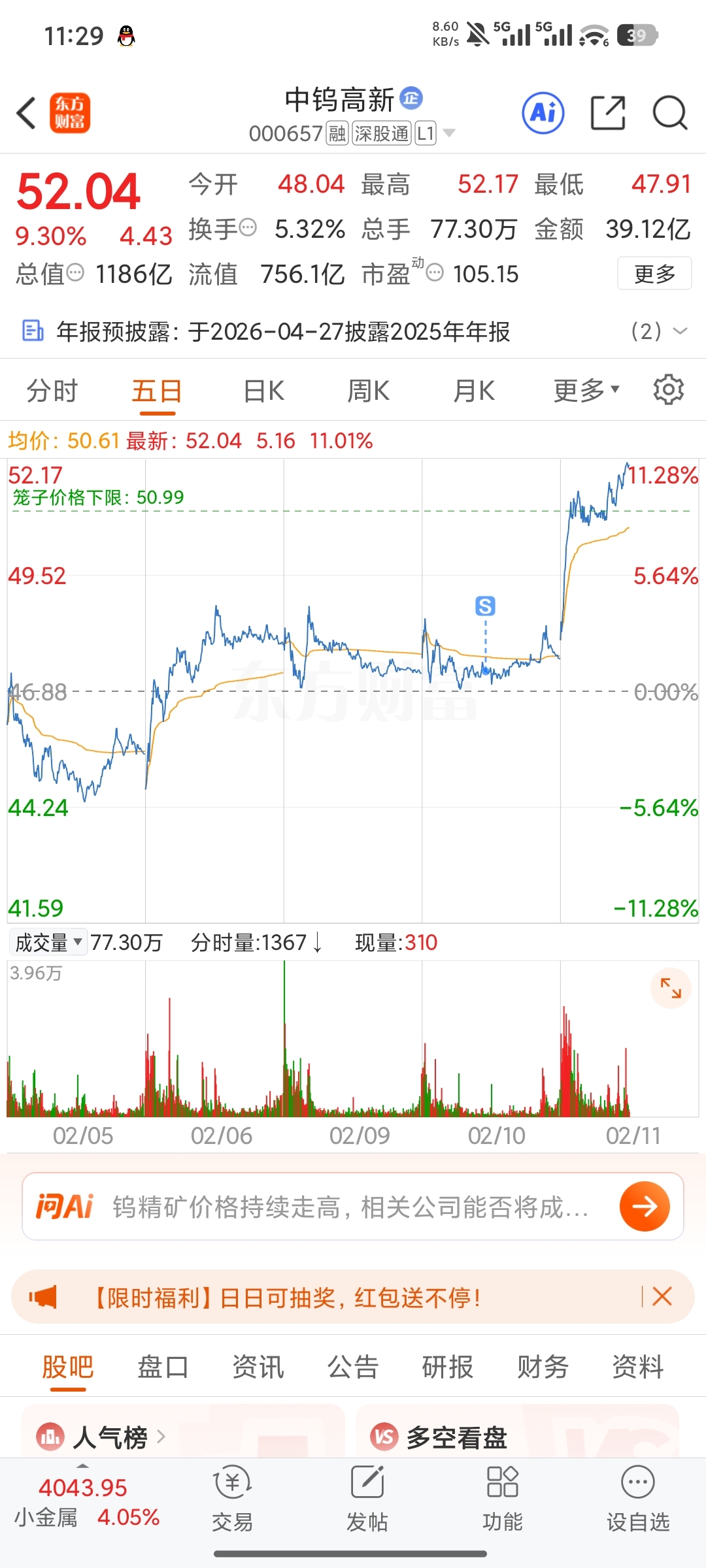 $中钨高新(SZ000657)$ 心理委员,心理委员,我不得劲,我不得劲
