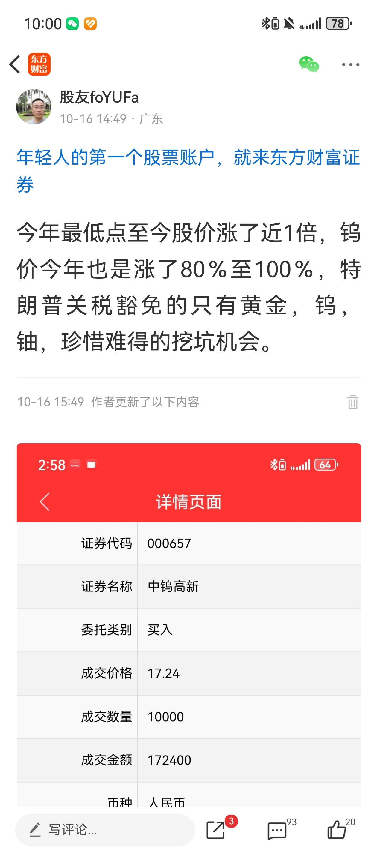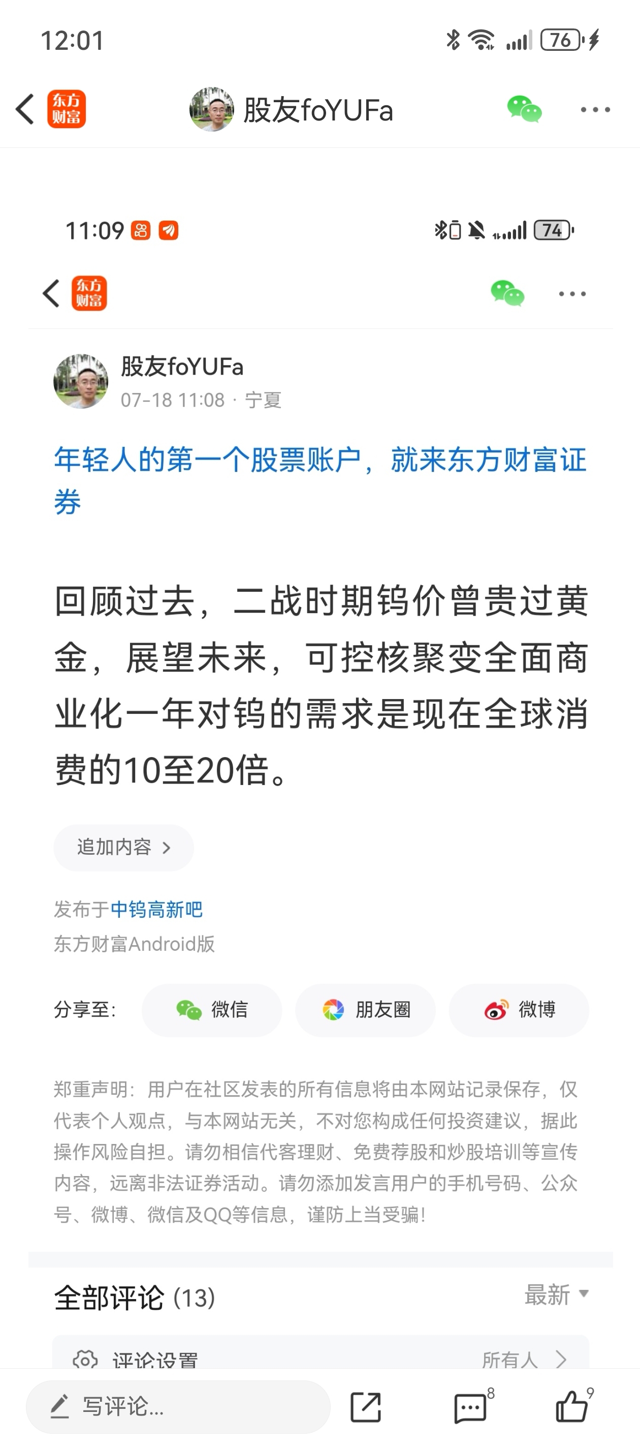 温馨提示: 1.根据《证券法》规定,禁止编造、传播虚假信息或者误导性信息,扰乱证券市场;2.用户在本社区发表的所有资料、言论等仅代表个人观点,与本网站立场无关,不对您构成任何投资建议。用户应基于自己的独立判断,自行决定证券投资并承担相应风险。《东方财富社区管理规定》