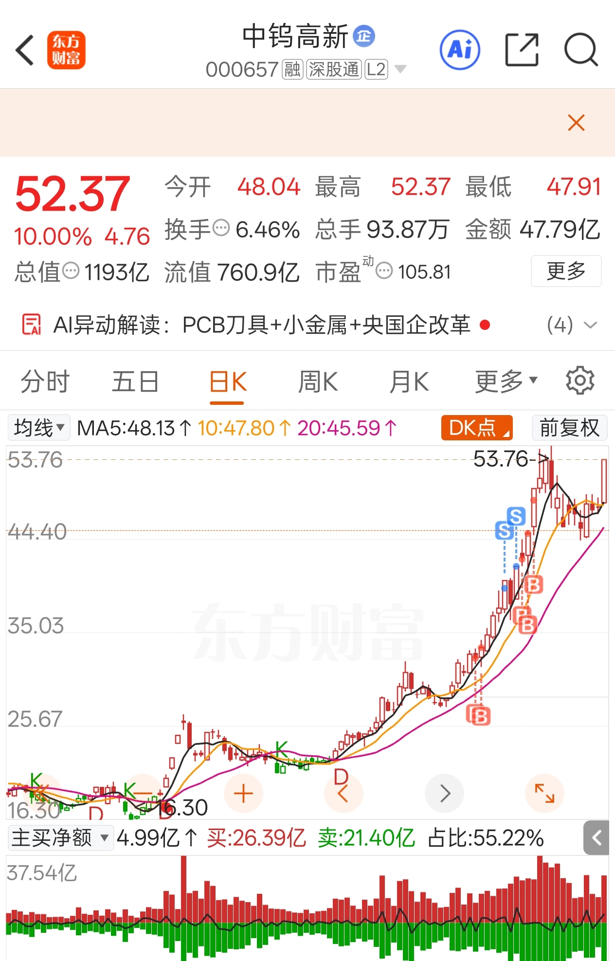 $中钨高新(SZ000657)$ 格局这么久,第二波开始了,这波看到60。