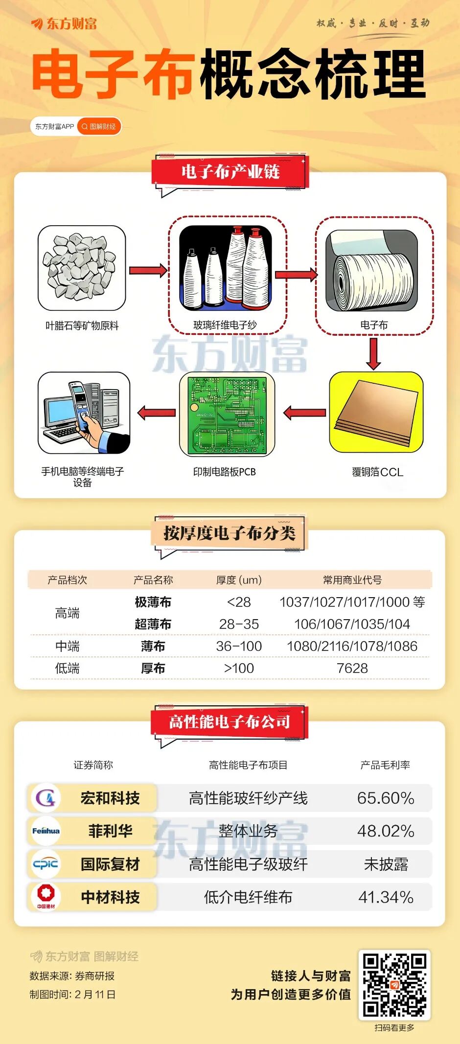 今天受涨价带动的还有电子布,即电子级玻璃纤维布,是制造覆铜板(CCL)与印制电路板(PCB)的核心增强与绝缘基材,而印制电路板则被广泛应用于通信设备、半导体、汽车电子等高端领域。