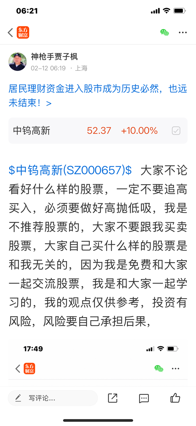 $中钨高新(SZ000657)$ 这个股我是前天看好的股票,大家不要追高买入,必须要做好高抛低吸,我是不推荐股票的,大家不要跟我买卖股票,大家自己买什么样的股票是和我无关的,因为我是免费和大家一起交流股票,我是和大家一起学习的,我的观点仅供参考,投资有风险,风险要自己承担后果,