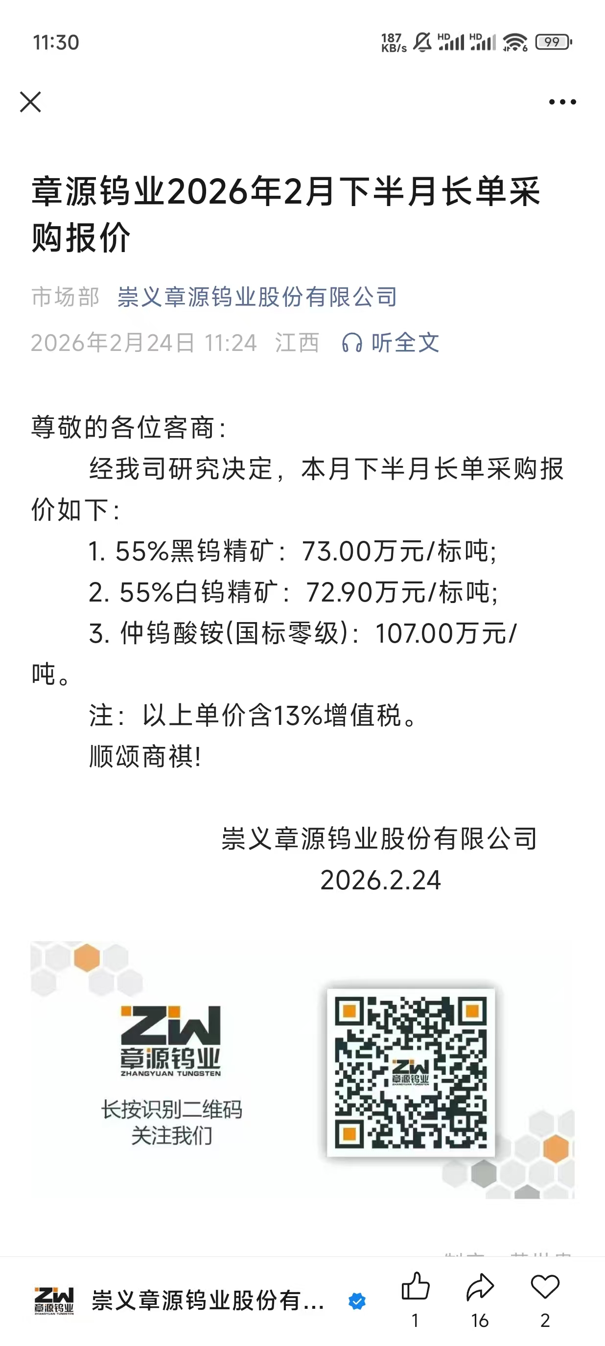 章源2月下旬采购价创新高。