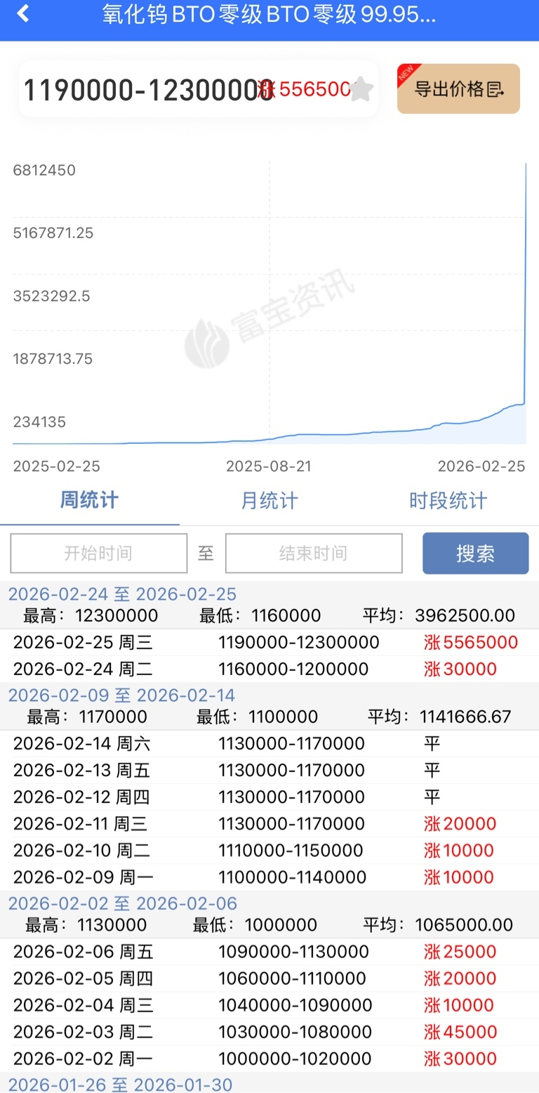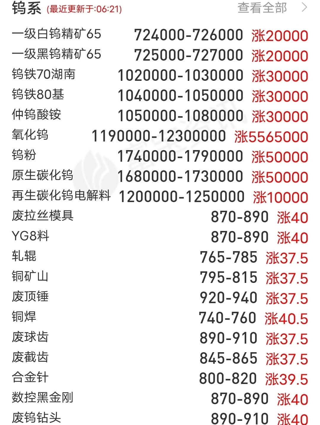 2026.2.25各位钨友——这是马年第2天的钨报价,继续新高!特别是氧化钨,从