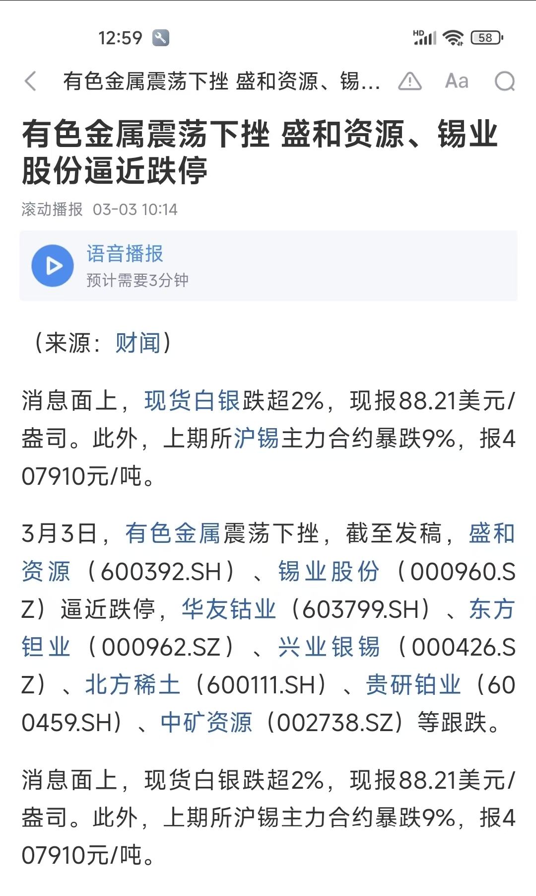 盛和资源,锡业跌停,有色跌停太多今天