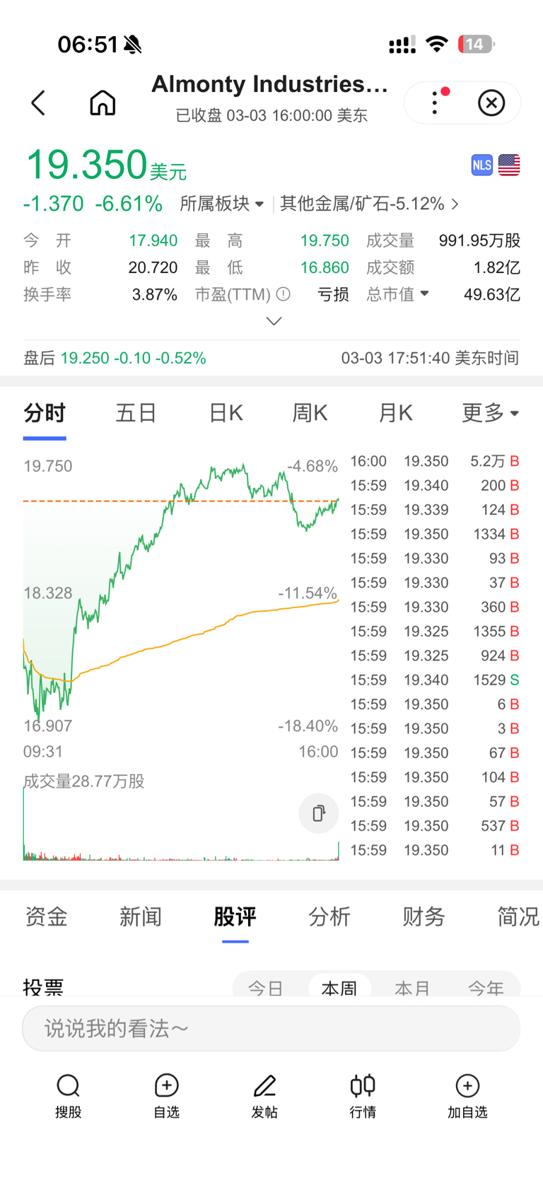 美股钨股alm修复得不错,从-16个点拉回到-6个点,今天预期看修复。不过暂时涨不了太高,毕竟昨天金银跌太猛了,黄金一天就从5380跌到5080,钨虽然可以,但有色板块很难。。。
