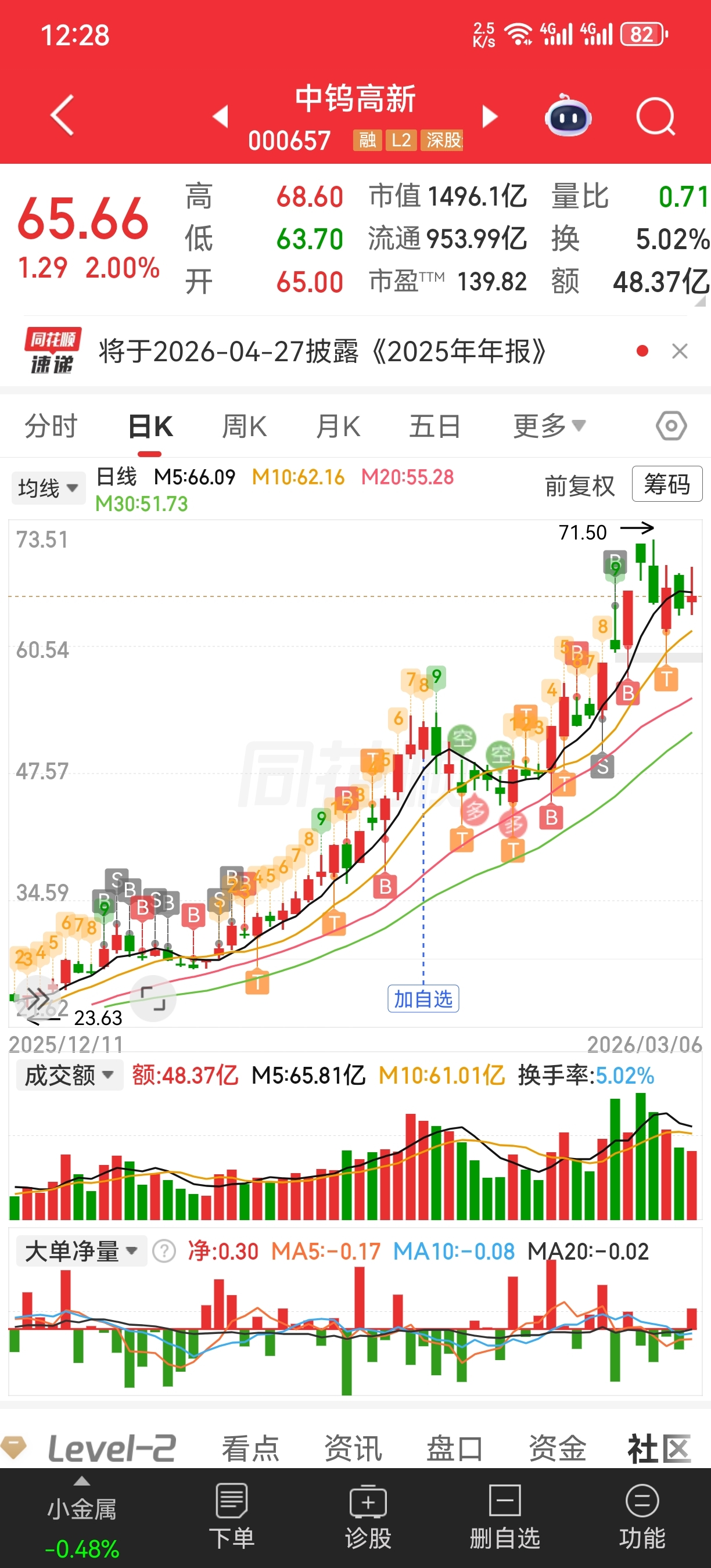 $中钨高新(SZ000657)$ $章源钨业(SZ002378)$ 感谢钨金改变我的人生命运。操作钨股是从出差去中钨高新位于四川自贡的硬质合金公司后开始的,时间是25年12月9日。当时跟厂里相关人员聊到钨的价格,他们说越来越贵,供应也越趋紧张。