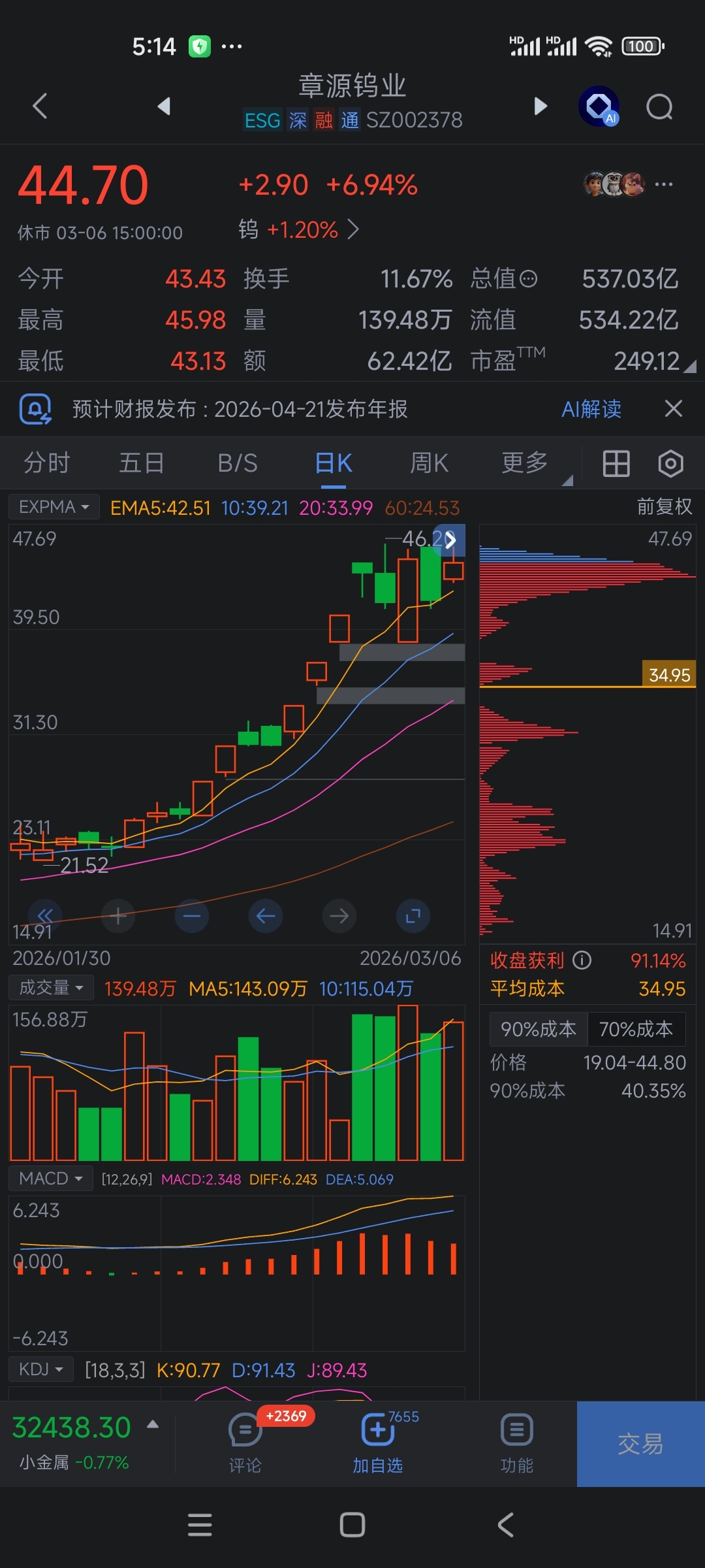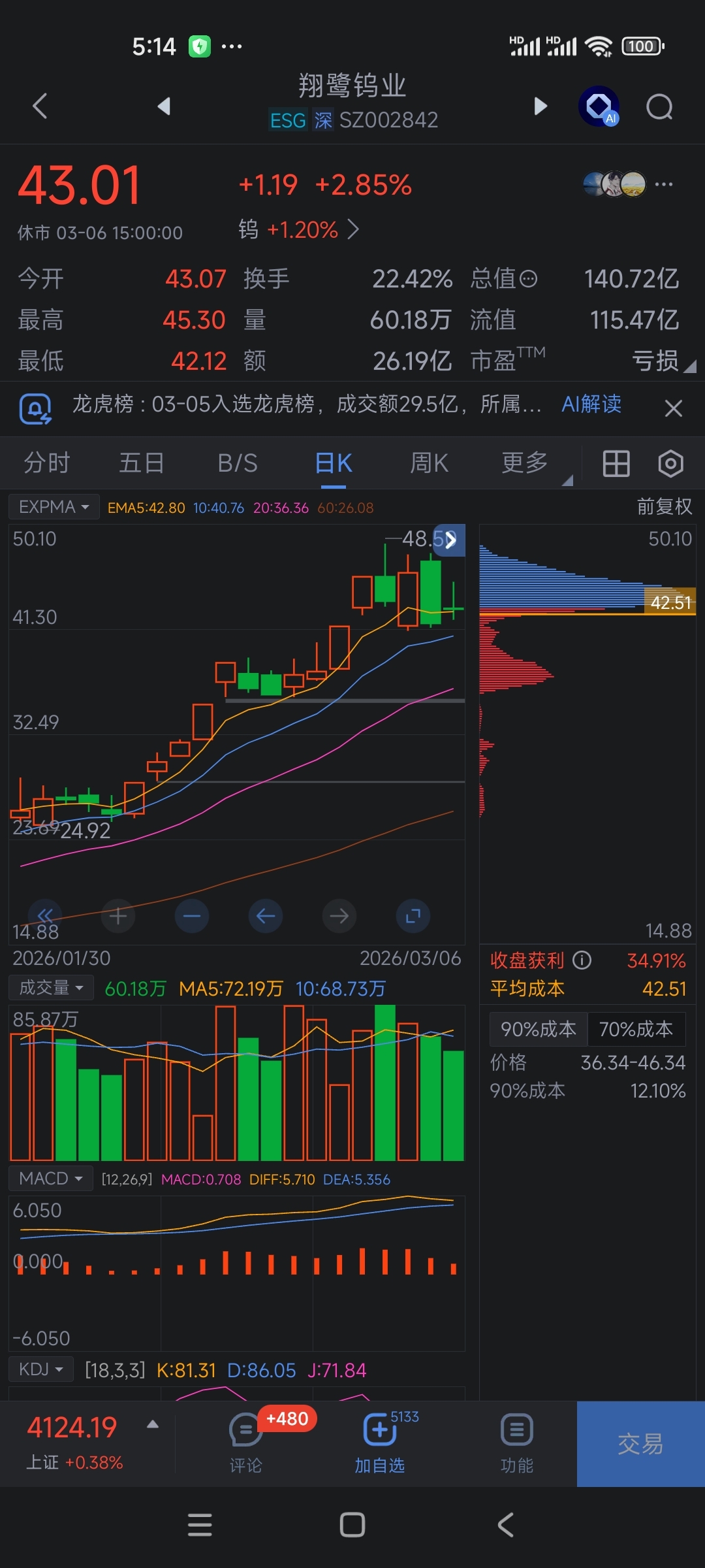 我们看看钨板块涨的最快领头筹码峰和我给你们参考,大家观察两天不操作看看,不差两天