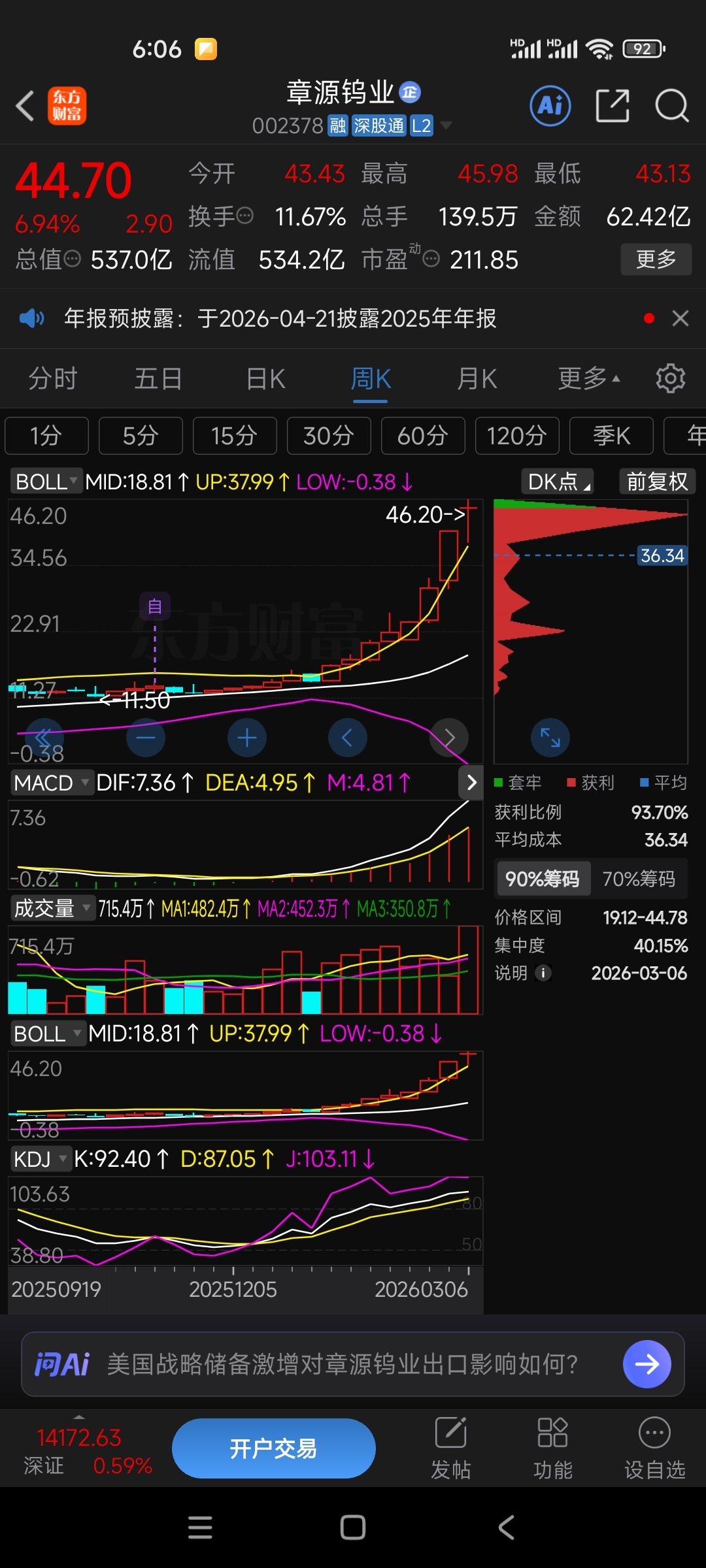 $中钨高新(SZ000657)$ $章源钨业(SZ002378)$ $厦门钨业(SH600549)$ 大家看看周线月线,筹码峰,还有机构游资卖出,三天之内必有大阴线,我们拭目以待,下周一二还会震荡诱多,周三周四主力不会护盘了,再看看筹码峰都已经移动上面,五浪走完了,一浪三浪,五浪上声浪走完了,后面就是五浪下跌后才会企稳