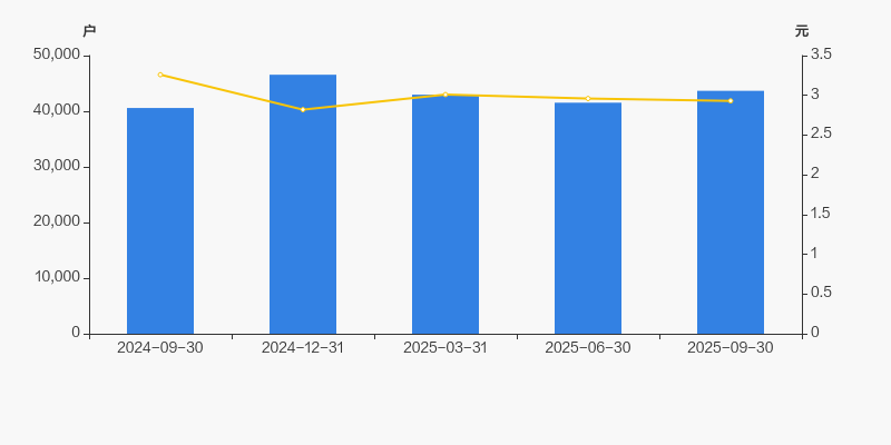 截至2025年9月30日,公司最新总股本为12.86亿股,且均为流通股。户均持有流通股数量由上期的3.1万股下降至2.94万股,户均流通市值8.63万元。